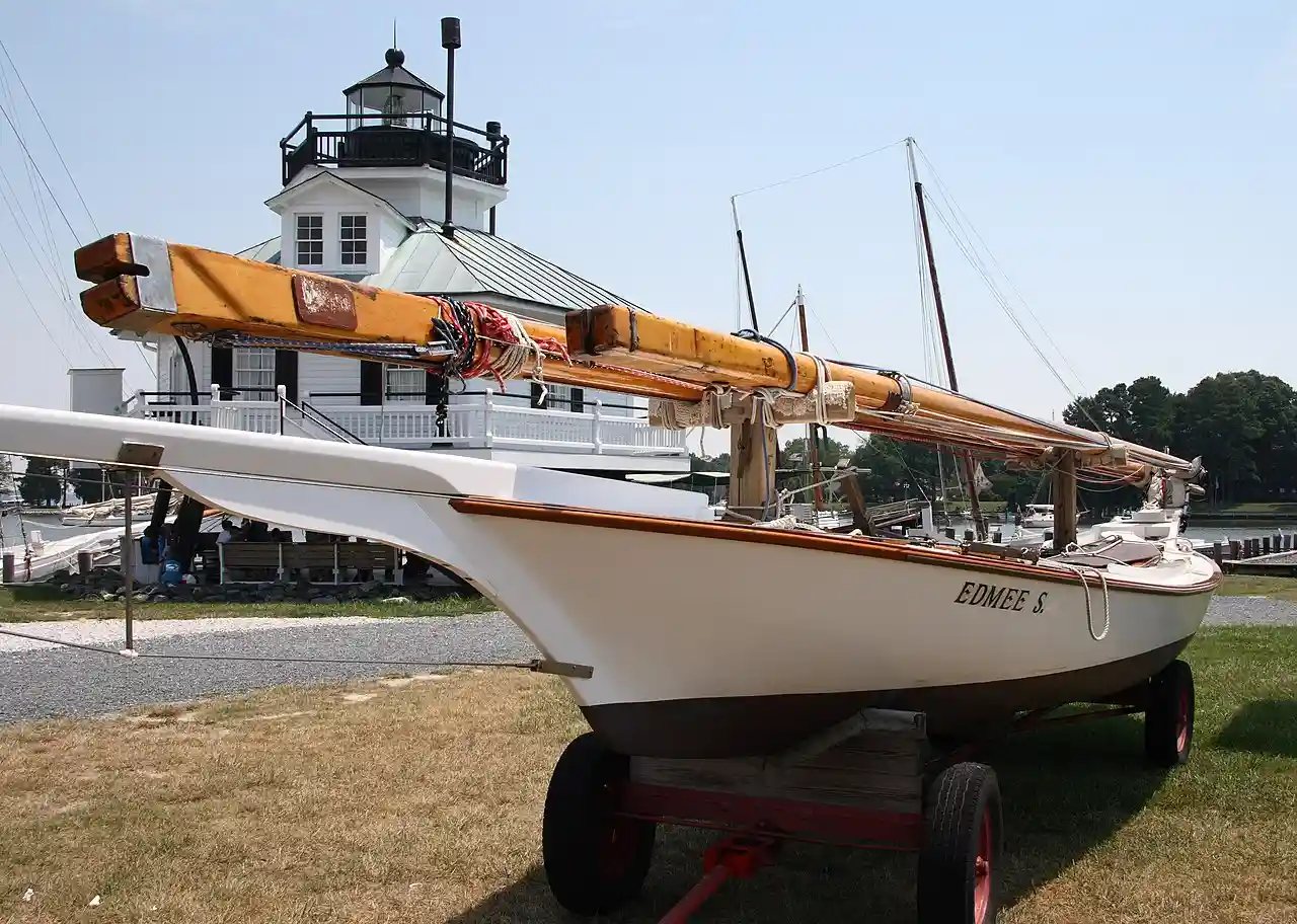 The Edmee S. is a Chesapeake Bay log canoe. She was built in the Tilghman Island style from hewn logs by Oliver Duke in the 1930s. She is one of the last 22 Chesapeake Bay racing log canoes, and is actively raced with a crew of nine to eleven people. Her original name was Cecilia Mae, but was renamed for Edmee S. Combs, whose husband funded the restoration. The hull was covered with fiberglass during the restoration. She is owned by the Chesapeake Bay Maritime Museum in Saint Michaels, Maryland and currently skippered by Marshall Patterson. Read more on Wikipedia