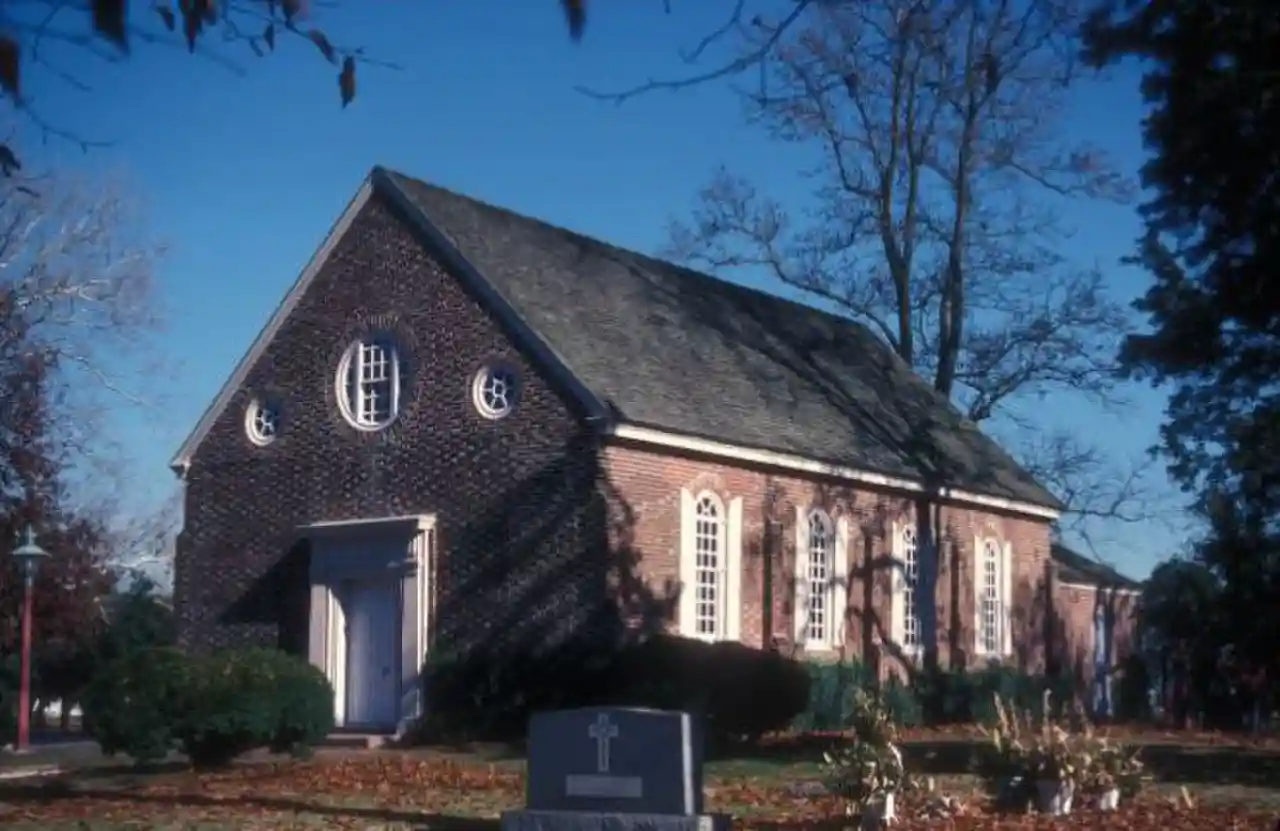 Old Wye Church is a historic Episcopal church at Wye Mills, Talbot County, Maryland. It is a one-story, gable-roofed, rectangular brick structure originally constructed in 1717–21. It was extensively renovated in 1854 and restored to its 18th-century appearance in 1947–49. It embodies the distinctive characteristics of Georgian Anglican architecture in its brick construction, semicircular-arched window openings, shouldered buttresses, rectangular plan, and simple massing. Read more on Wikipedia