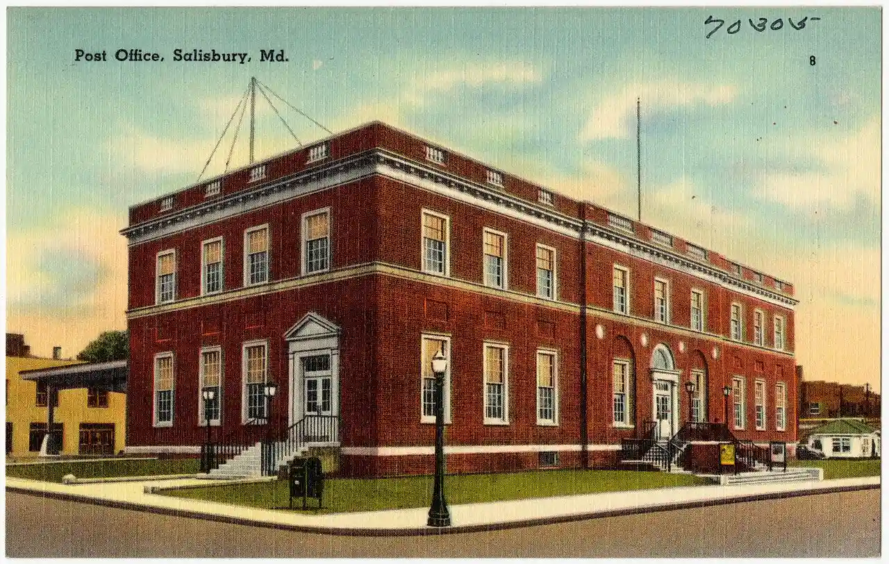 The Maude R. Toulson Federal Building is a historic federal government building in Salisbury, Maryland. It is a large two-story brick building with Classical Revival styling. It has a nine-bay front facade, the center three projecting slightly, and is topped by a low balustrade punctuated by brick piers. The center bays have recessed arches, with windows in the outer of those bays flanking a center entrance. It was built in 1924–25 as a five bay building, with an enlargement in 1934–35; the original design was by the Office of the Supervising Architect under James A. Wetmore. The building initially housed the United States Post Office, and now houses other federal facilities, including the United States District Court for the District of Maryland. Read more on Wikipedia