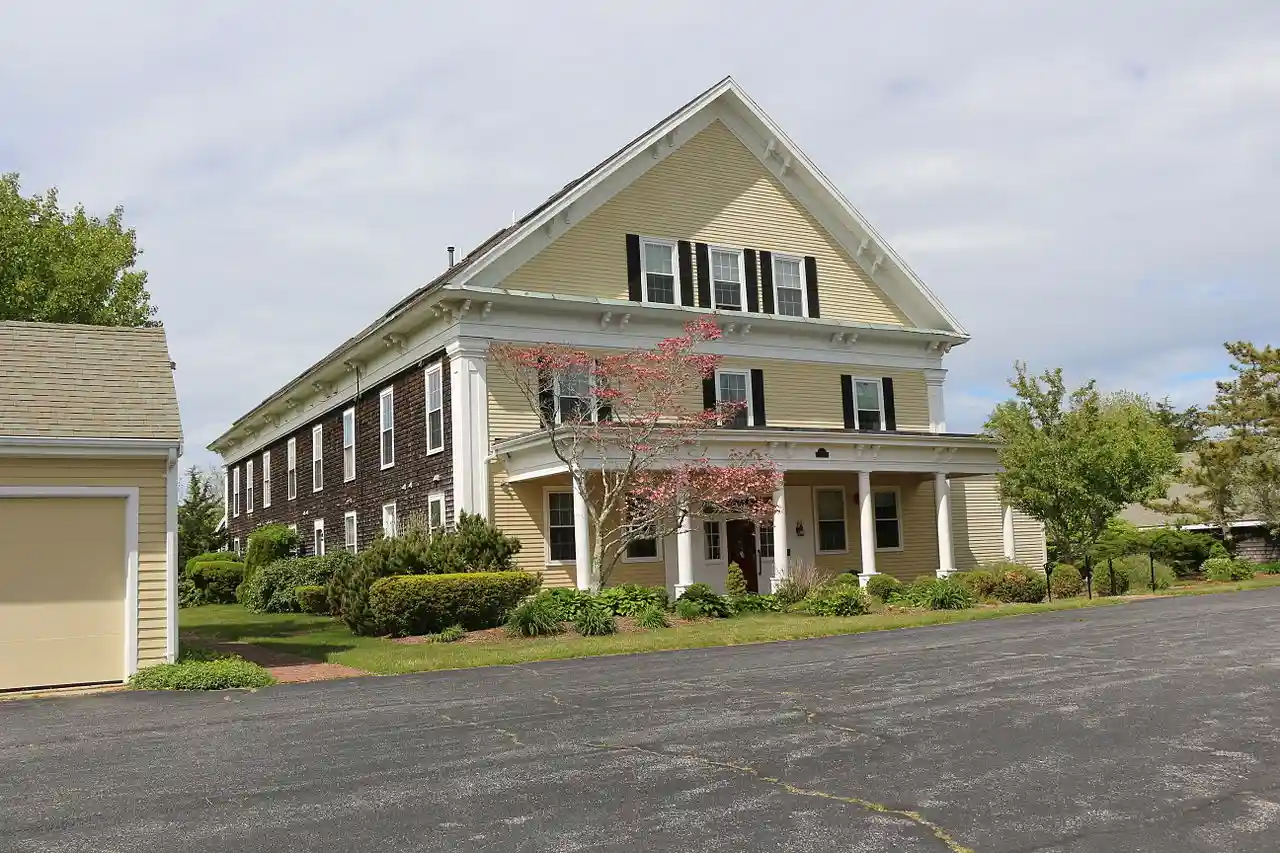 The Barnstable Fair Hall or Barnstable Agricultural Hall was an exhibition hall located in Barnstable, Massachusetts that was listed on the National Register of Historic Places on March 7, 1979. It was leveled by fire in the early morning of April 2, 1980. In the early 1990s, the structure was re-built as a condominium complex. In 1856 and 1857, land around the present building was given and sold to the Agricultural Society for use as a fairground. Total acreage of the property eventually exceeded twenty acres and extended as far back as the Maraspin Creek, a tidal stream. In 1857- 1858 a building "for exhibition purposes and a hall for public meetings" was built on the site of the present building. In February 1862, this first fair hall was destroyed by a gale, resulting in the formation of a building committee in April 1862 and the construction of the new structure between June 17 and October 14, 1862. Money for building costs came from private subscription, to which William Sturgis, a Boston merchant and native of Barnstable, was the major donor. Praised as being "superior in taste to the old" hall, the new Fair Hall was dedicated at the Barnstable County Fair of 1862 (October 15) and served as the exhibition hall for all subsequent annual fairs until 1931 when the fair ceased to be held regularly. The fair is now held on an annual basis in Falmouth. During the period in which this property served as a fairground, there were additional shed and storage buildings to the north and east of the Fair Hall, as well as a track for trotting races, baseball diamond and grandstand, all of which have been removed. In addition to the usual exhibits of livestock and agricultural products, turn-of-the century fairs had vaudeville performances, balloonists, and other entertainments. Read more on Wikipedia
