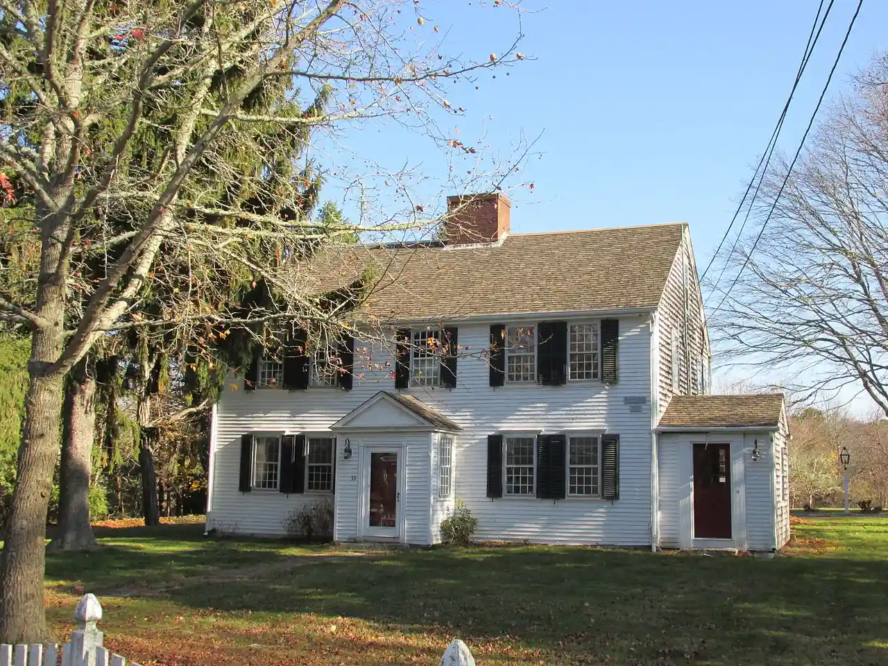 The Elnathan Nye House is a historic house at 33 Old Main Road in North Falmouth, Massachusetts. The oldest portion of this -story house was built c. 1735; it was extended to its present five-bay facade in 1772. The interior of the house is particularly well preserved, with three extant beehive ovens, plaster-and-lath walls, and period wood paneling. The property's barn may also date to the 18th century. Elnathan Nye, the builder, was a prominent local citizen. Read more on Wikipedia