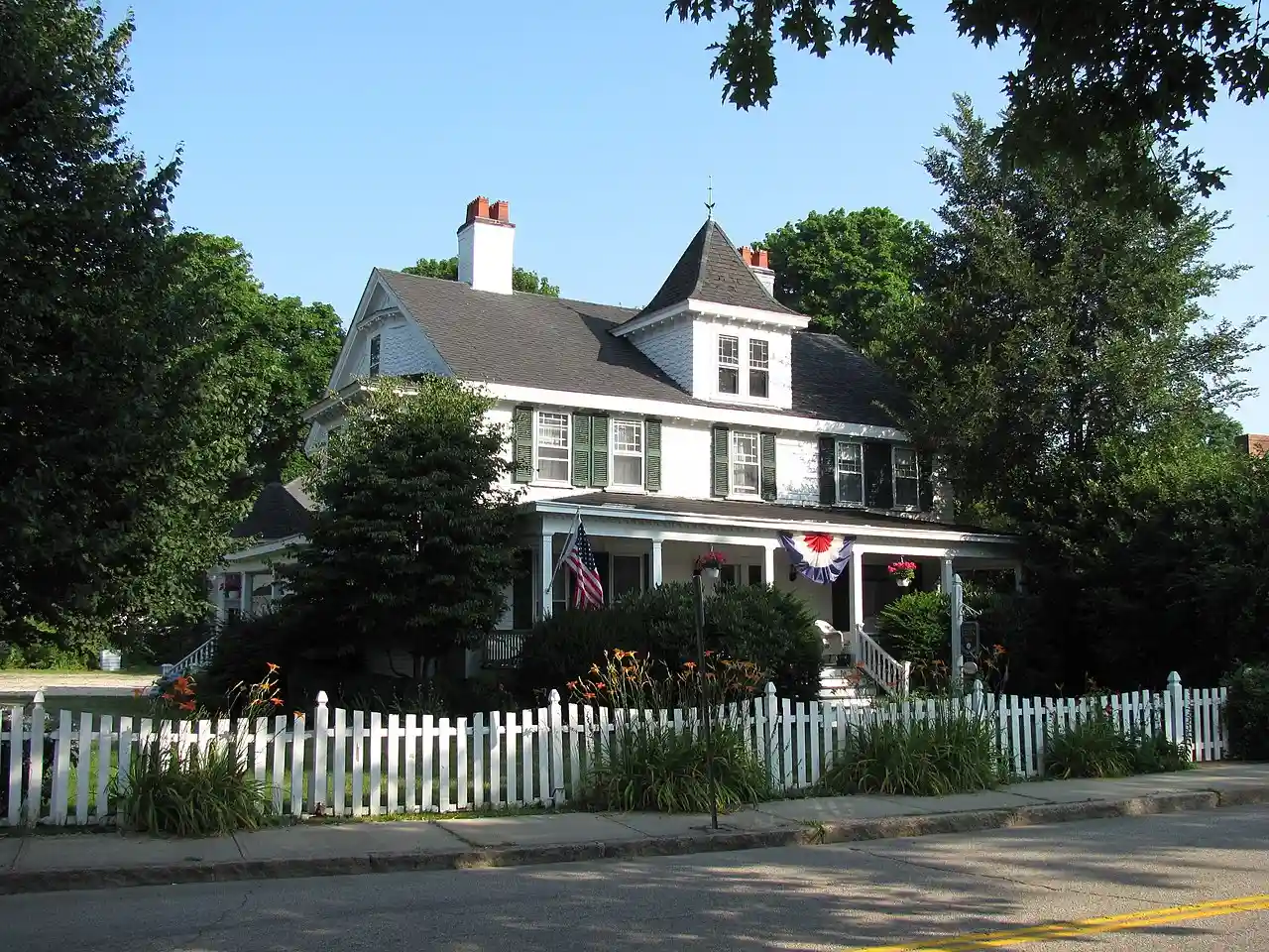 The Falmouth Village Green Historic District is a historic district encompassing the historic village center of Falmouth, Massachusetts. It is centered on the triangular village green formed by Main Street, West Main Street, and Hewins Street, and extends south on Locust Street to the Old Town Cemetery. This area has been the town center since 1756, and is architecturally dominated by late Colonial and Federal period buildings. The district was added to the National Register of Historic Places in 1996. Read more on Wikipedia