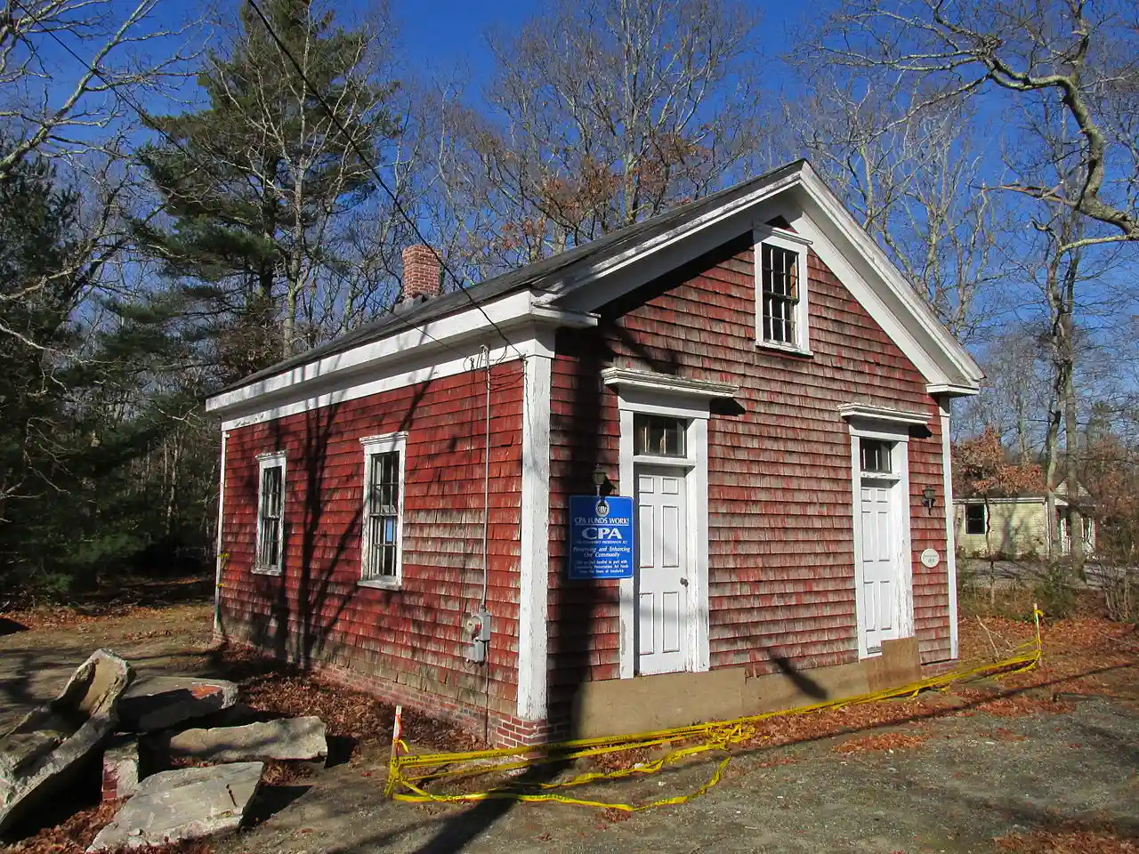 The Forestdale School, also known as the Greenville School, is a historic one-room school building at 87 Falmouth-Sandwich Road (Massachusetts Route 130) in Sandwich, Massachusetts. The single story wood-frame structure was built in 1878, and is one of a small number of surviving district school buildings on Cape Cod. It has Greek Revival features, including gable end returns, and transom windows over the two entrances. The building was listed on the National Register of Historic Places in 1997. Read more on Wikipedia