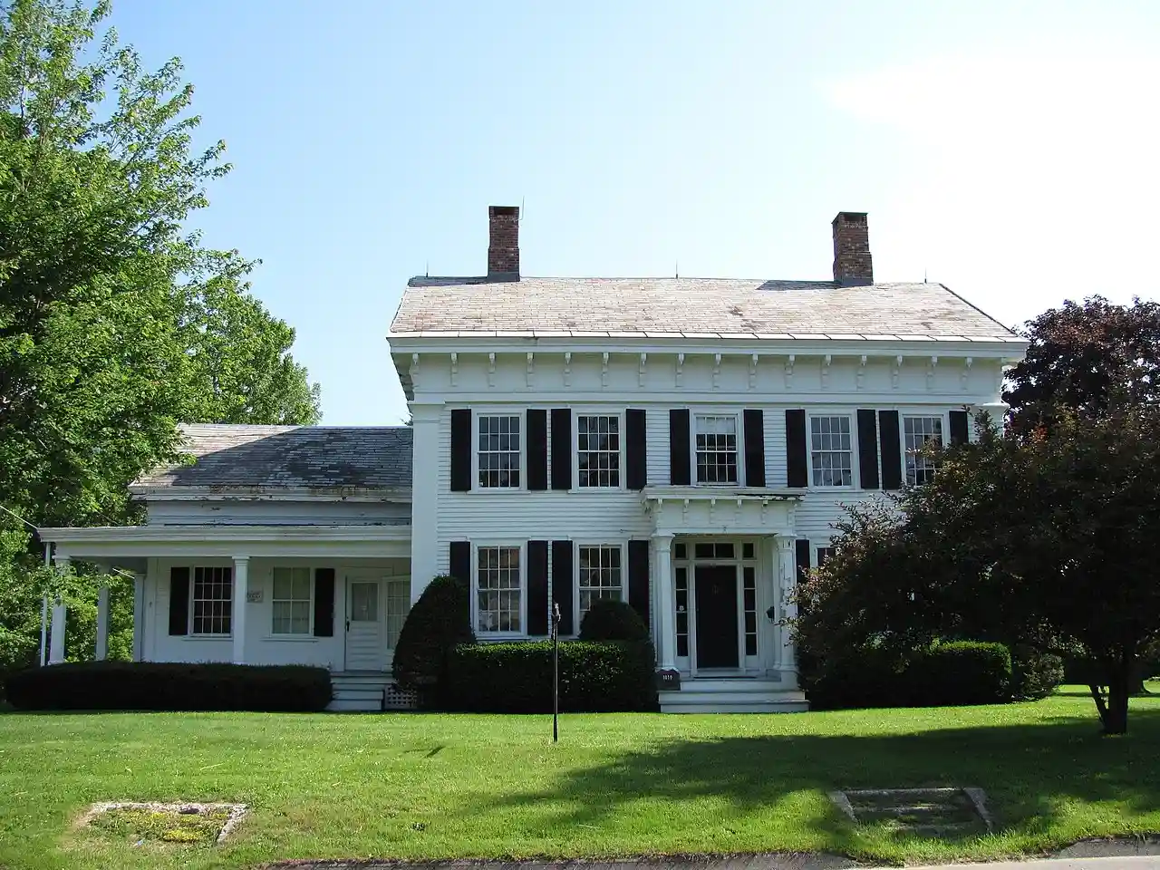 The Eber Sherman Farm is a historic farmstead located at 1010 State Road in North Adams, Massachusetts. Built about 1843, it is a well-preserved example of a local variant of transitional Greek Revival and Italianate architecture. It was listed on the National Register of Historic Places in 1983. Read more on Wikipedia