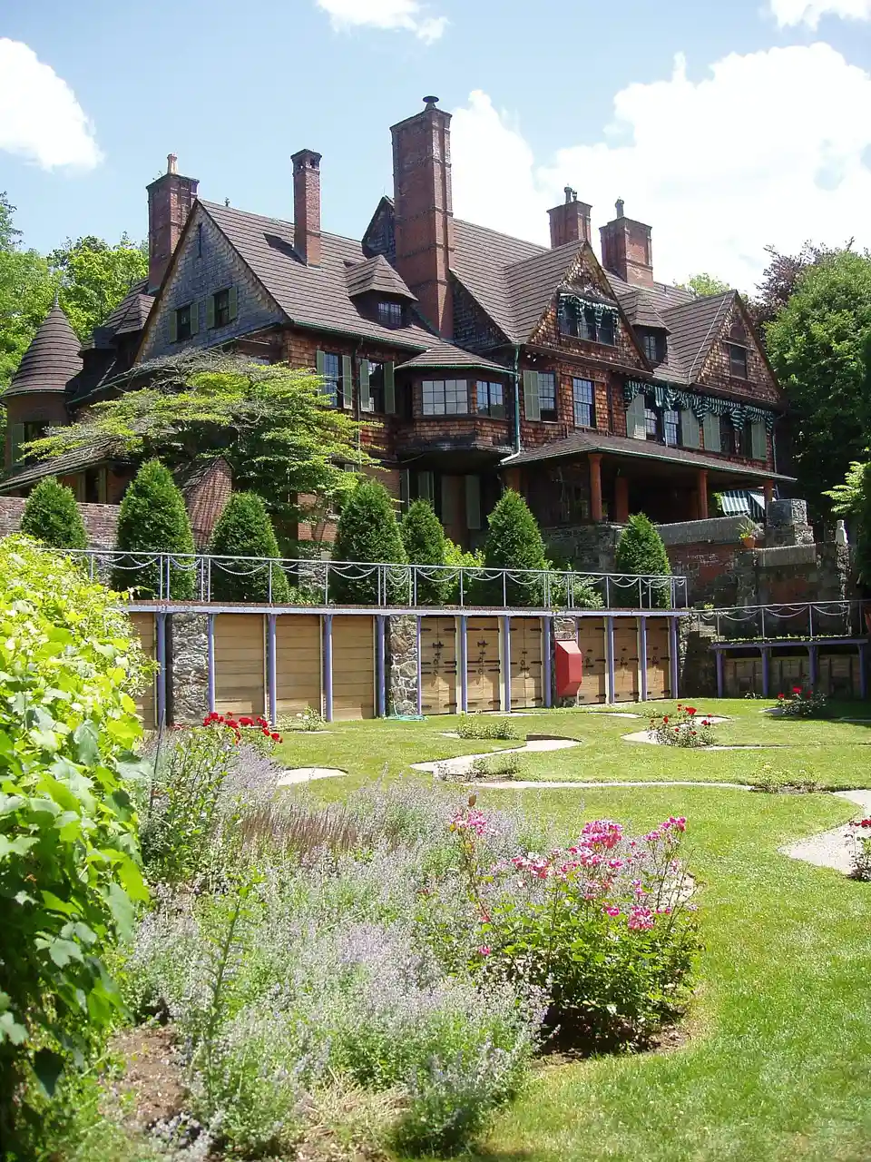 Naumkeag is the former country estate of noted New York City lawyer Joseph Hodges Choate and Caroline Dutcher Sterling Choate, located at 5 Prospect Hill Road, Stockbridge, Massachusetts. The estate's centerpiece is a 44-room, Shingle Style country house designed principally by Stanford White of McKim, Mead & White, and constructed in 1885 and 1886. Read more on Wikipedia