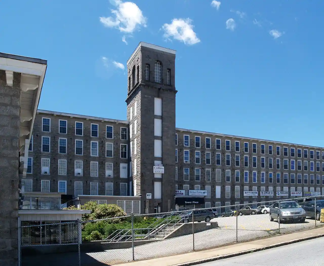 Barnard Mills is an historic textile mill at 641-657 Quarry Street in Fall River, Massachusetts. Developed beginning in 1874, it was the first mill to use ring spinners instead of mule spinners, and was a major local employer until its closure in 1939. The complex has been redeveloped as a commercial retail space called Tower Mill. The mill was added to the National Register of Historic Places in 1983. Read more on Wikipedia