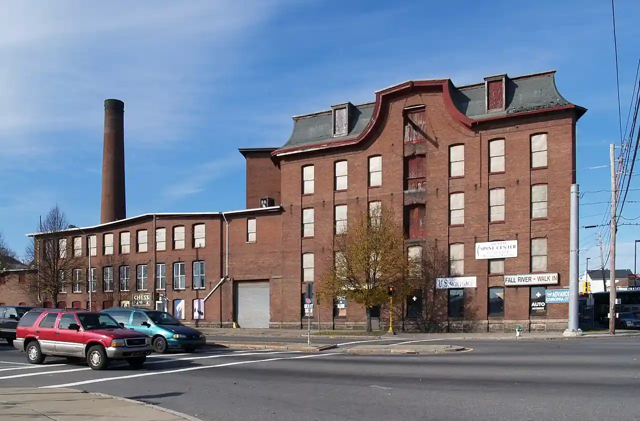 Davol Mills is a historic textile mill complex located at the corner of Plymouth Avenue and Rodman Street in Fall River, Massachusetts. It was built in 1867 and expanded in 1871. It was added to the National Register of Historic Places in 1983 as part of the Corky Row Historic District The red brick mills are unique in the city, built in the Second Empire style. Read more on Wikipedia