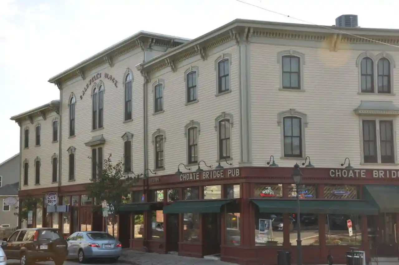 The Caldwell Block is a historic block on S. Main Street in Ipswich, Massachusetts. It is the oldest surviving building in Ipswich that was designed as a commercial and retail space, and is still used for that purpose. It is located prominently in the center of Ipswich, at the junction of North and South Main Streets, and Central and Market Streets. It was built in 1870 by Luther Caldwell, on the site of an old woolen mill that was destroyed by fire a few years earlier, and features Italianate styling. The building has always housed retail stores on the ground floor and office space above. It is notable as the location of the offices of writer John Updike between 1961 and 1974, when he wrote many of his works there. Read more on Wikipedia