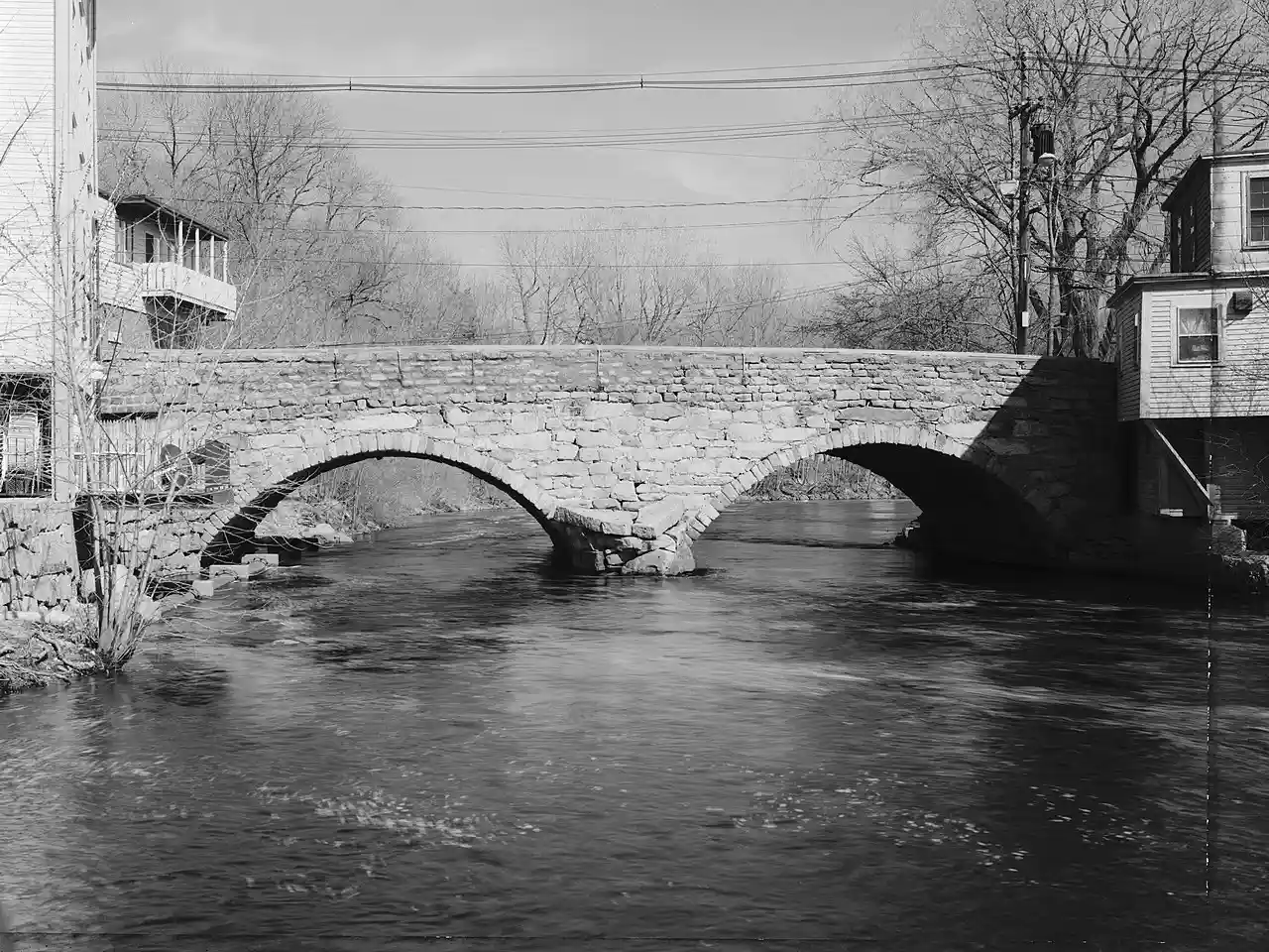 Choate Bridge (1764) is a historic stone arch bridge carrying Route 1A/Route 133 (South Main Street) over the Ipswich River in Ipswich, Massachusetts. It is one of the oldest surviving bridges in North America, and is probably the oldest in Massachusetts. It was listed on the National Register of Historic Places in 1972 and also has been designated as a National Historic Civil Engineering Landmark. Read more on Wikipedia