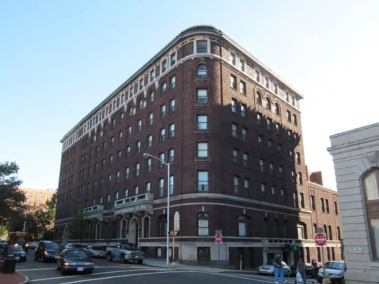 Apremont Triangle Historic District is a historic district in Springfield, Massachusetts, located at the junction of Pearl, Hillman, Bridge, and Chestnut Streets in its Metro Center district. The Apremont Triangle Historic District includes the Apremont Triangle Park, nicknamed "the Heart of Springfield" by the city's arts community; the historic, 10-story Kimball Towers Condominiums, (formerly the luxurious Hotel Kimball - "Western Massachusetts' Leading Hotel - built in 1910;) a nine-story historic, former YMCA, which now houses apartments at 122 Chestnut Street, (1915); the six-story Neo-Gothic Tarbell-Waters Building (1923), a former office building that was auctioned in August 2011; the two-story Harris-Green building, a 1920s Rolls-Royce showroom, which is, actually, two buildings; and the two-story Birnie Building, a 1930s Pontiac showroom. Currently, the district is the center of Springfield's bohemian arts community, featuring multi-media organizations, artists' lofts, ethnic restaurants, and organizations like The Apremont Arts Community - group of multi-media artists, non-profit organizations, and businesses. Read more on Wikipedia