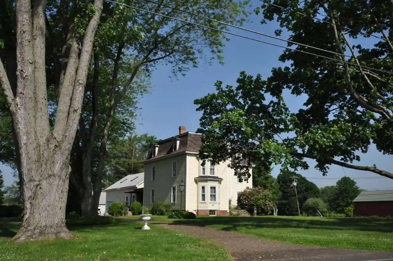 The Bradstreet Historic District encompasses the rural 19th-century village of Bradstreet in Hatfield, Massachusetts. It is centered at the junction of Depot Road and Main Street, and includes properties lining those two streets and Old Farm Road. Most of the buildings in the area date to the second half of the 19th century, featuring architectural styles typical of the period, including Queen Anne, Second Empire, Italianate, and Colonial Revival. The village grew on land that was originally granted to colonial governor Simon Bradstreet and divided in 1682, and has remained largely agricultural since then. The district was listed on the National Register of Historic Places in 1997. Read more on Wikipedia