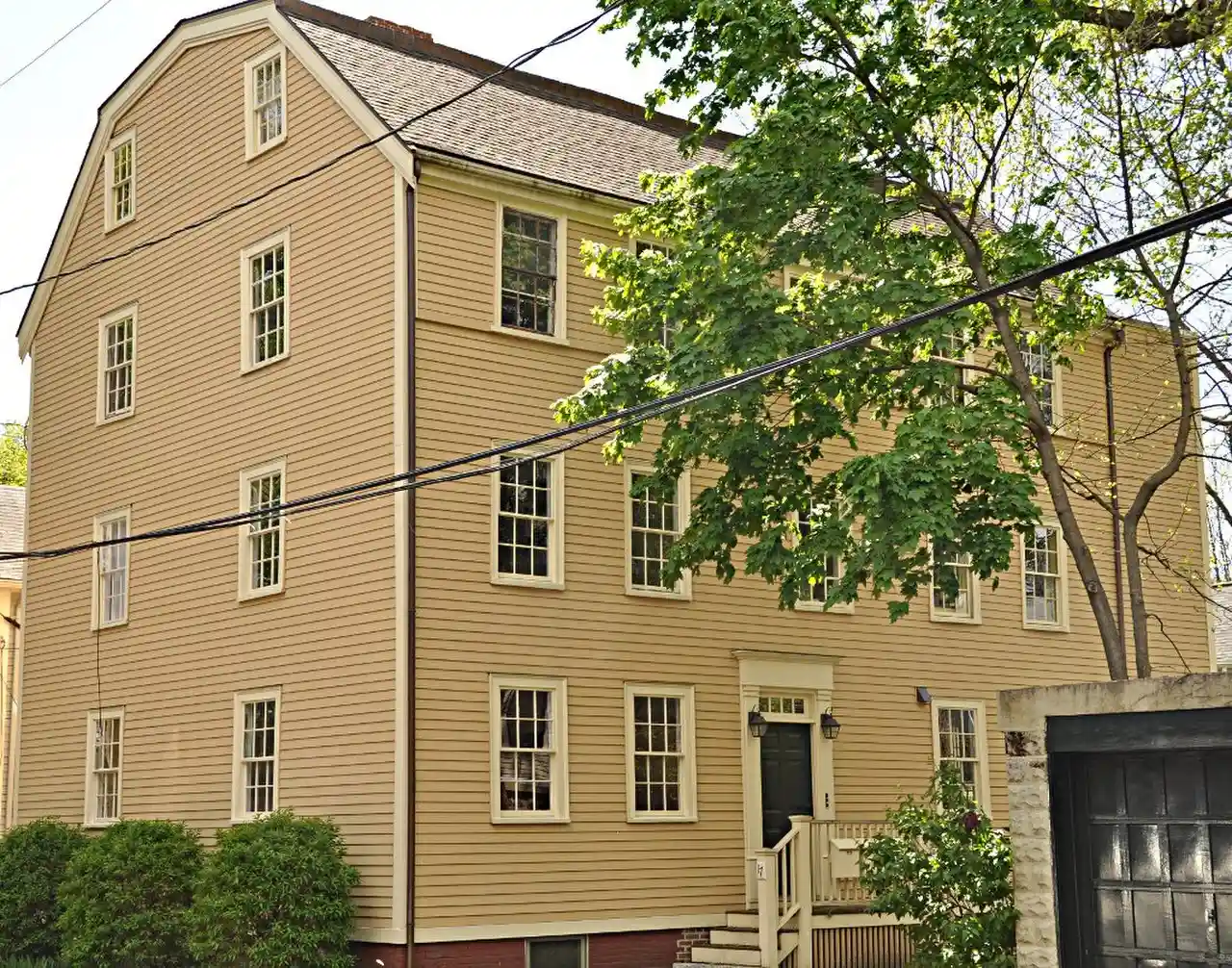 The Aaron Hill House is a historic house at 17 Brown Street in Cambridge, Massachusetts. It was built c. 1754, and was originally a two-story structure with a steeply pitched roof. It was moved c. 1867 from its original location at 99 Brattle Street, at which time the third story was added, giving the roof a gambrel shape. The house was built for Deacon Aaron Hill, a prominent local politician, and is one of only seven houses from that period that still stands in the city. Read more on Wikipedia