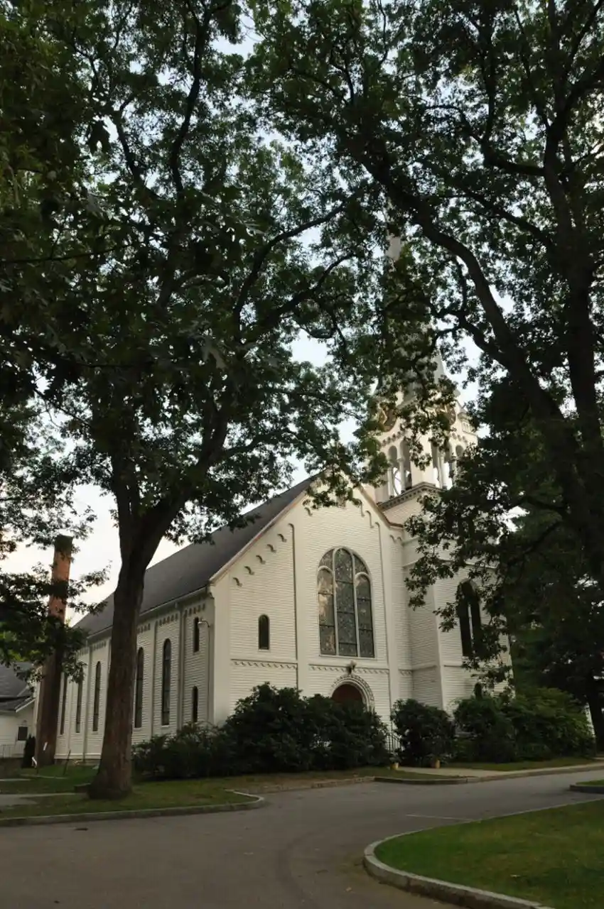 United Parish of Auburndale, formerly the Auburndale Congregational Church, is a historic church at 64 Hancock Street in the Auburndale village of Newton, Massachusetts. Built in 1857 for an 1850 congregation and repeatedly enlarged, it is a prominent regional example of Romanesque architecture in wood. It was added to the National Register of Historic Places on September 4, 1986. Read more on Wikipedia