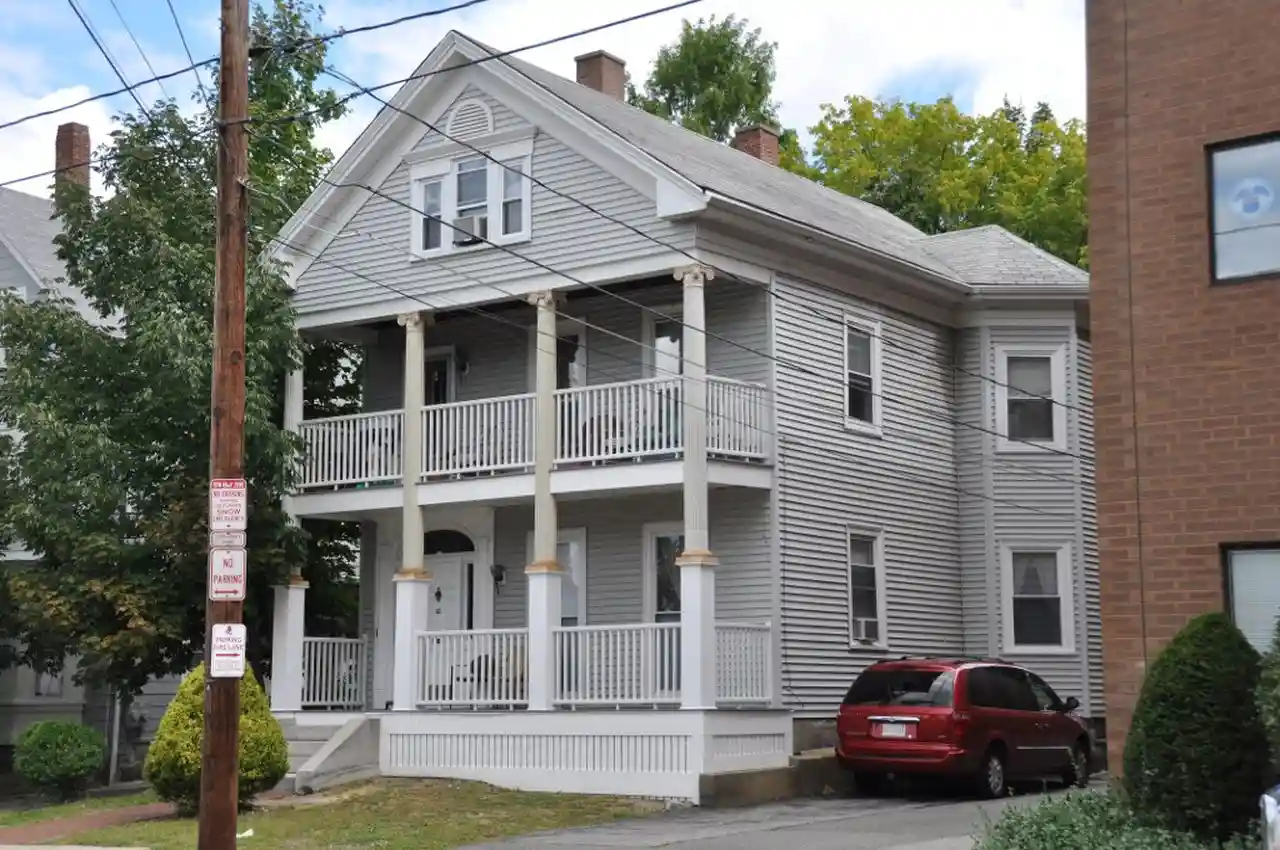 The Benjamin F. Clough House is a historic house in Waltham, Massachusetts. Built c. 1855, the -story wood-frame house is one a few temple-front Greek Revival houses in the city. Although it has retained Ionic columns supporting its two-level porch and front gable, it has lost other details, including paneled piers on which the columns rested, as well as Colonial Revival corner brackets. The Palladian window in the front gable end is also a Colonial Revival addition, recently modified with modern sashes. Benjamin Clough, the owner, operated a shoe manufactory at the back of the property. The house was listed on the National Register of Historic Places in 1989. Read more on Wikipedia