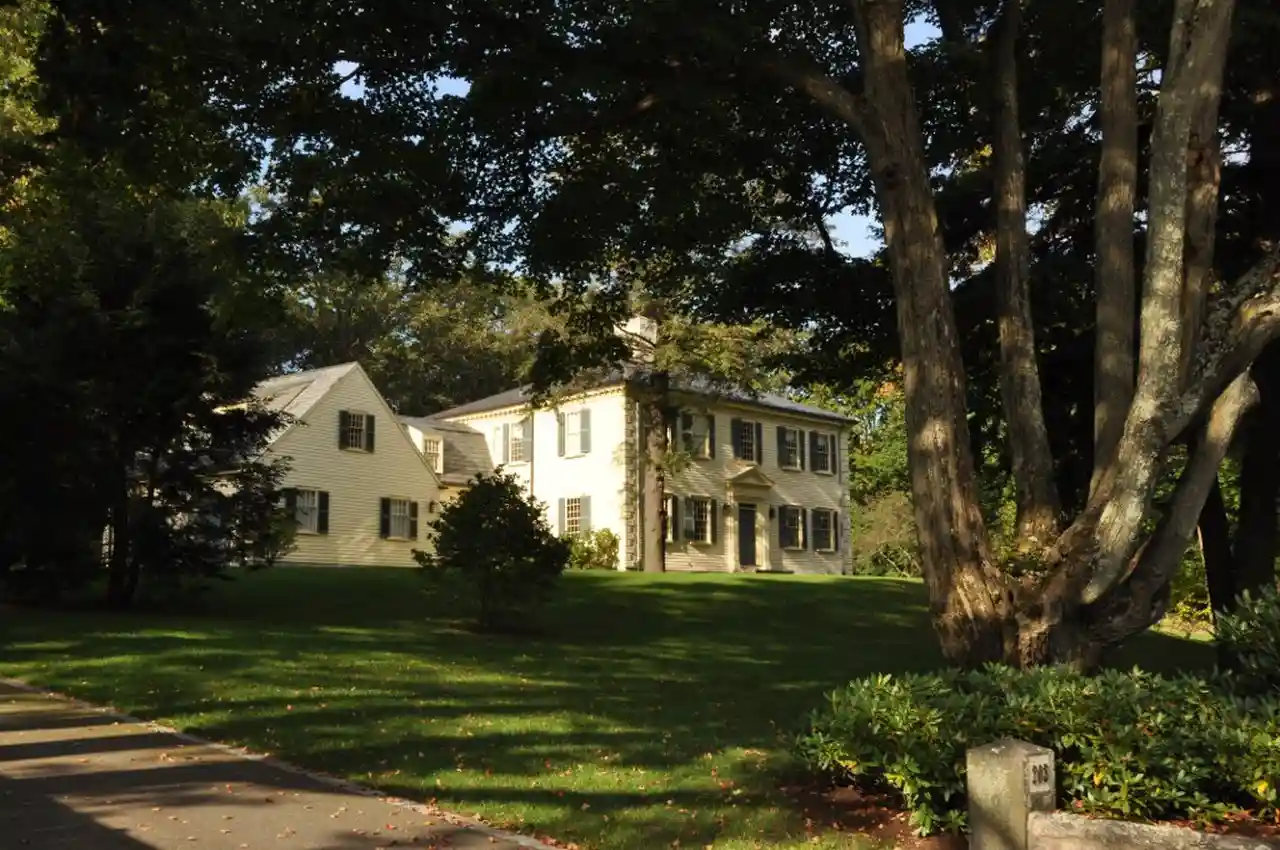The Benjamin White House is a historic house at 203 Heath Street in Brookline, Massachusetts. Built in 1790, this two-story wood-frame house is one of the oldest on Heath Street. It has been moved twice: once when the Cabot family established a large estate in the area, at which time they moved it back from Heath Street and added a barn, and again in 1947, when the barn was demolished and the house moved onto its foundation. Much of the interior finish was lost during interior remodelling in the 1940s, but the exterior has retained much of its 18th and 19th century trim. Read more on Wikipedia