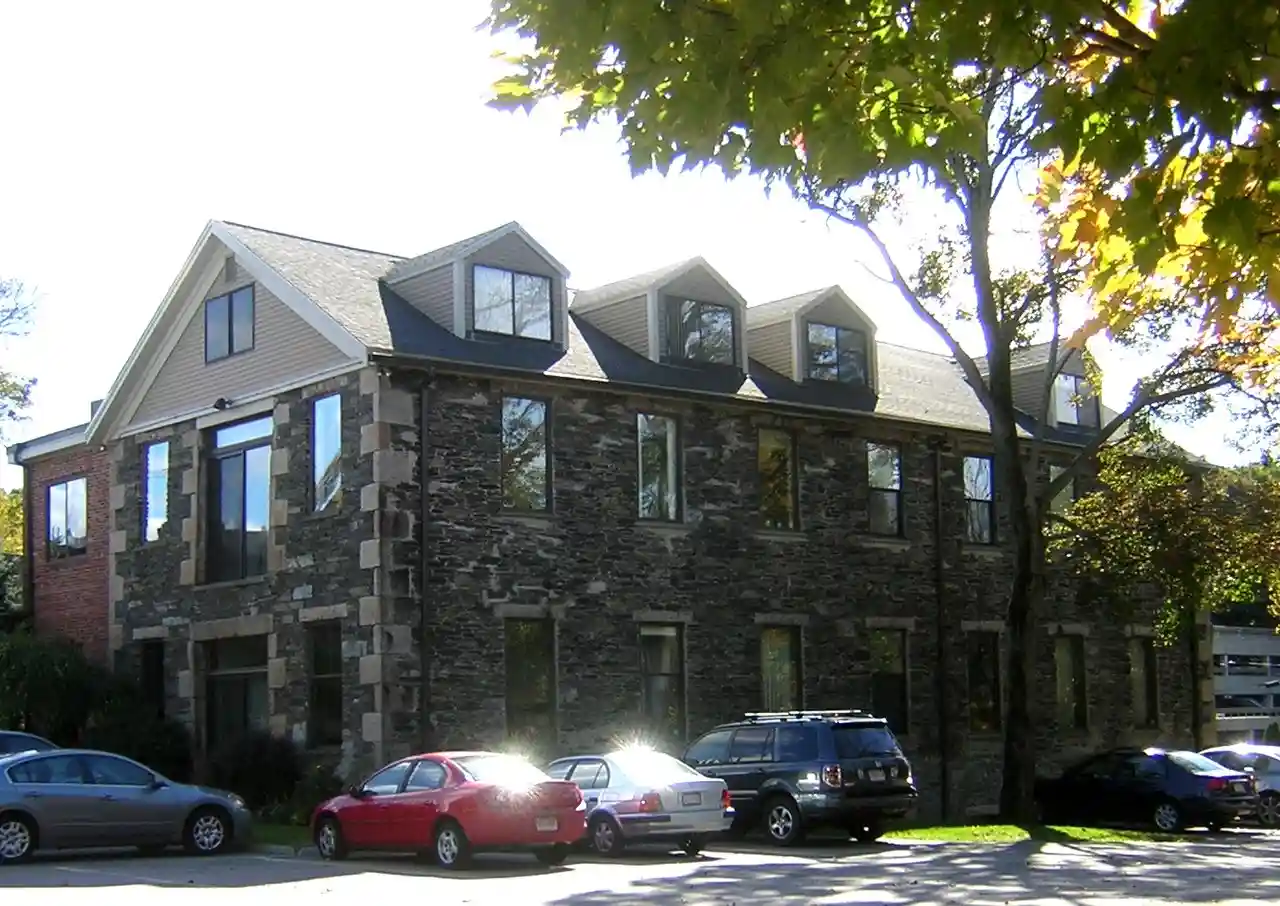 The Eaton-Moulton Mill is a historic industrial building at 37 Walnut Street in the Wellesley Lower Falls village of Wellesley, Massachusetts. The -story granite mill building was built c. 1853 by the firm of Reuben Ware and William Clark, manufacturers of papermaking machinery. The building is distinctive for its use of stone, a relatively uncommon construction material in this area. The Lower Falls area of Wellesley and Newton developed as a papermaking center in the 18th century, and began transitioning from handmade methods to machine methods producing rolls of paper in the 1830s. Ware and Clark were at the forefront of this transition, establishing a machine shop in 1832 where the manufactured equipment for this new process. This building was built for them in 1853, and continued under Eaton and Moulton and other owners until papermaking declined. The building now houses commercial office space. Read more on Wikipedia
