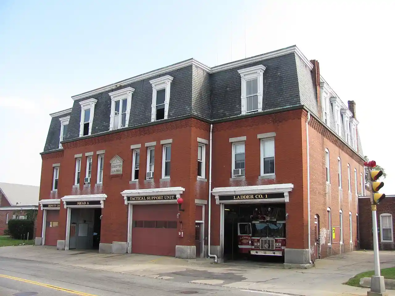 The Central Fire Station is a historic fire station on 40 Pleasant Street in Brockton, Massachusetts. Built in 1884–85, the three-story brick mansard-roofed Second Empire building included a number of "firsts". It was the first brick fire house in the city, and it was the nation's first fire house to be electrified, receiving its power via an underground cable from a nearby power plant that had been built under the supervision of Thomas Alva Edison. Read more on Wikipedia