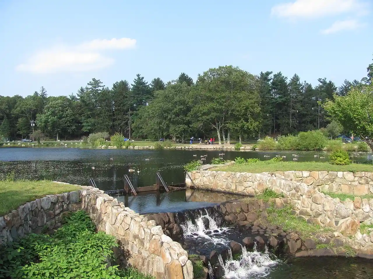 D.W. Field Park is a municipal park managed by the parks department of the city of Brockton, Massachusetts. The park consists of of fields, woodlands, and water bodies in northern Brockton and southern Avon, Massachusetts. It was created in 1925 as a bequest from Brockton businessman Daniel W. Field. Its landscape is dominated by a chain of seven water bodies, all but one of which are man-made, impounding Beaver Brook. The oldest of them, Cross Pond, was created in the 1790s; these lakes, ponds, and reservoirs, were, with one exception, created before the park was laid out, and served either agricultural or industrial purposes. Waldo Lake was created in the 1930s as part of the park's design. Read more on Wikipedia