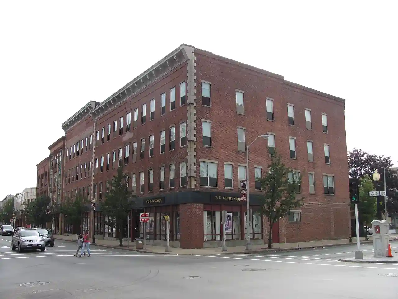The Lyman Block is a historic commercial building at 83-91 Main Street in Brockton, Massachusetts. Built in 1876 for a local business group, it is a fine local example of Italianate style, and one of the elements of a group of four well-preserved 19th-century commercial buildings in the city. The block was listed on the National Register of Historic Places in 1982. Read more on Wikipedia