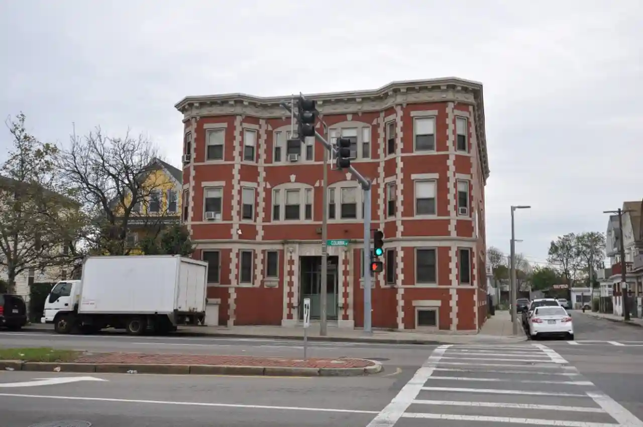 The Columbia Road–Devon Street Historic District encompasses a collection of brick residential apartment houses on Columbia Road in the Dorchester neighborhood of Boston, Massachusetts. Arrayed on the southeast side of the road near its junction with Devon Street are seven multistory buildings, constructed in the first two decades of the 20th century, when the area was developed as a streetcar suburb. An eighth building from the same period is located on the northwest side at the junction with Stanwood Street. These apartment blocks are typical of the speculative housing built at the time, with most of them built out of red brick laid in Flemish bond, with cast stone trim. Read more on Wikipedia