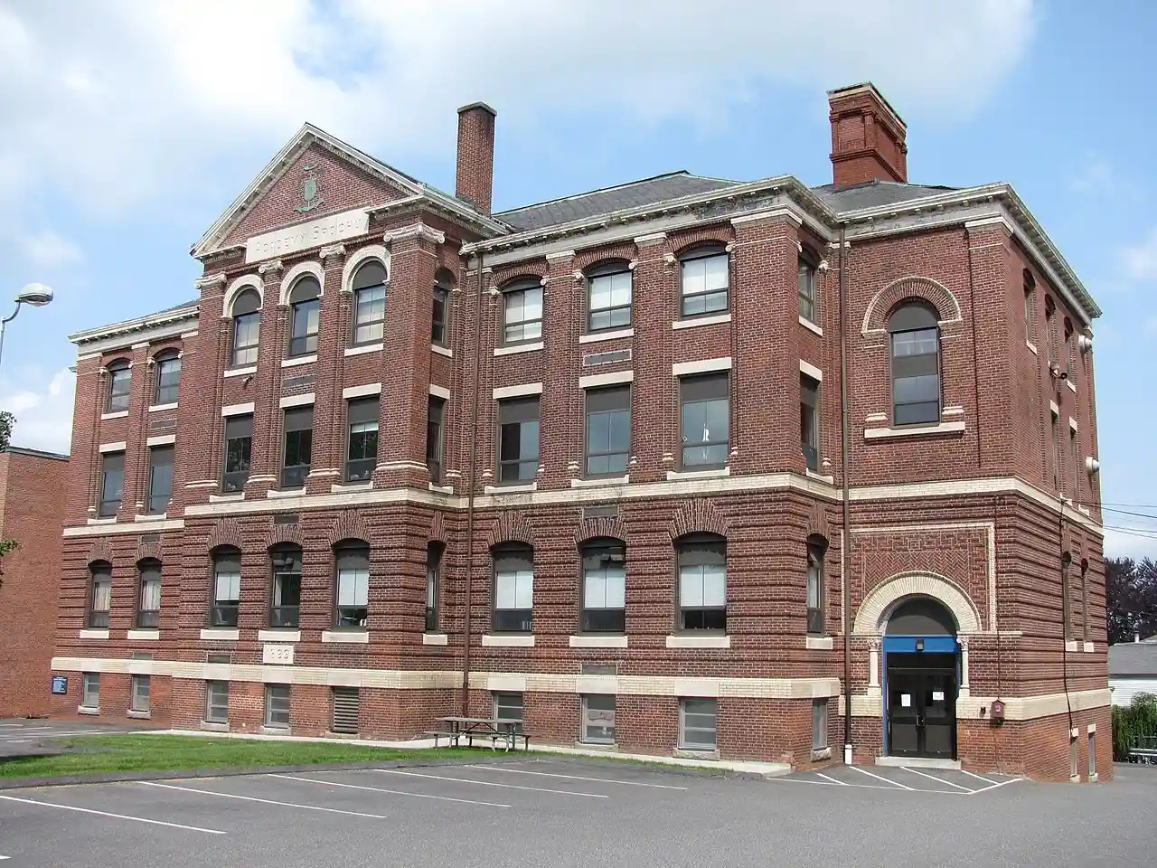 The Academie Brochu is a historic school at 29 Pine Street in Southbridge, Massachusetts. Built in 1899, it is one of the city's most imposing Colonial Revival buildings, and a significant element of the development of its Franco-American community. The building was listed on the National Register of Historic Places on June 22, 1989. It was gifted to Harrington Memorial Hospital and now houses Harrington Health System offices. Read more on Wikipedia