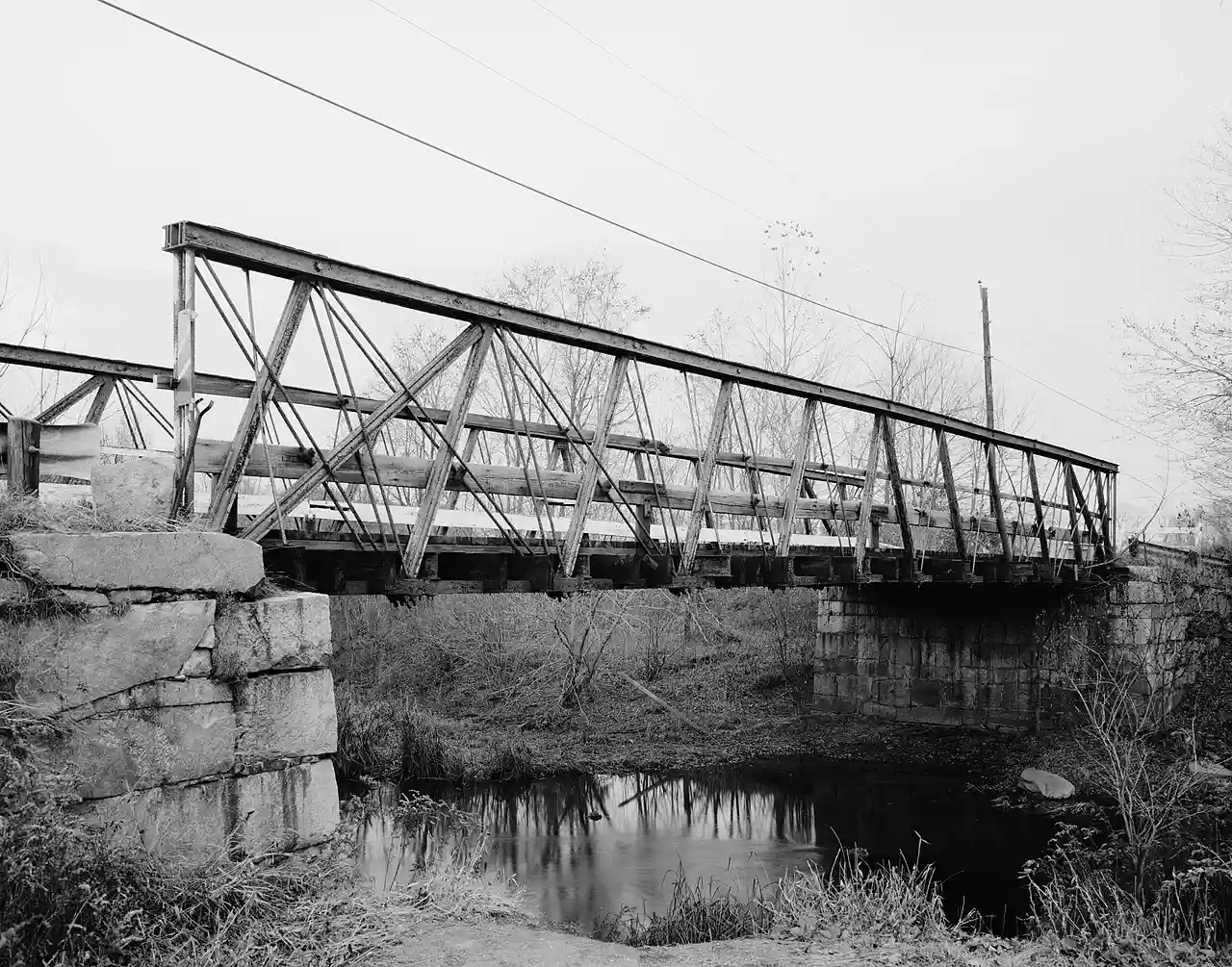 The Atherton Bridge is a historic iron truss bridge in Lancaster, Massachusetts, spanning the South Branch of the Nashua River. It is a rare example of a hybrid pony truss that is similar to the 19th century truss design of Simeon S. Post. It was built by J. H. Cofrode & Co. of Philadelphia in 1870. It was the first iron bridge to be constructed in the town. The bridge was added to the National Register of Historic Places in 1979. Read more on Wikipedia