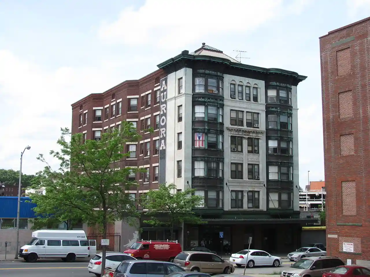 The Aurora Hotel is a historic hotel building at 652-660 Main Street in Worcester, Massachusetts. The six story Classical Revival building was built in 1898 for Charles Stevens, son of a Worcester businessman, who was a lawyer and major landowner in the city. It features decorative carved stone panels, bay windows with pressed metal ornamentation, and a pressed metal cornice. Read more on Wikipedia