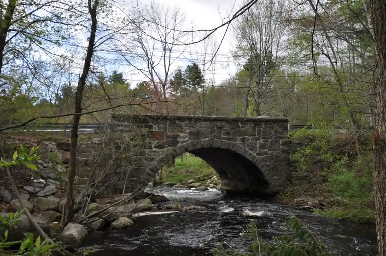 Bartlett's Bridge is a historic stone arch bridge carrying Clara Barton Road over the French River in Oxford, Massachusetts. Built in 1889, it is a rare example of late 19th-century stone bridge construction in the state. It was originally built to provide improved capacity for vehicles servicing a nearby textile mill complex. The bridge was listed on the National Register of Historic Places in 2000. Read more on Wikipedia