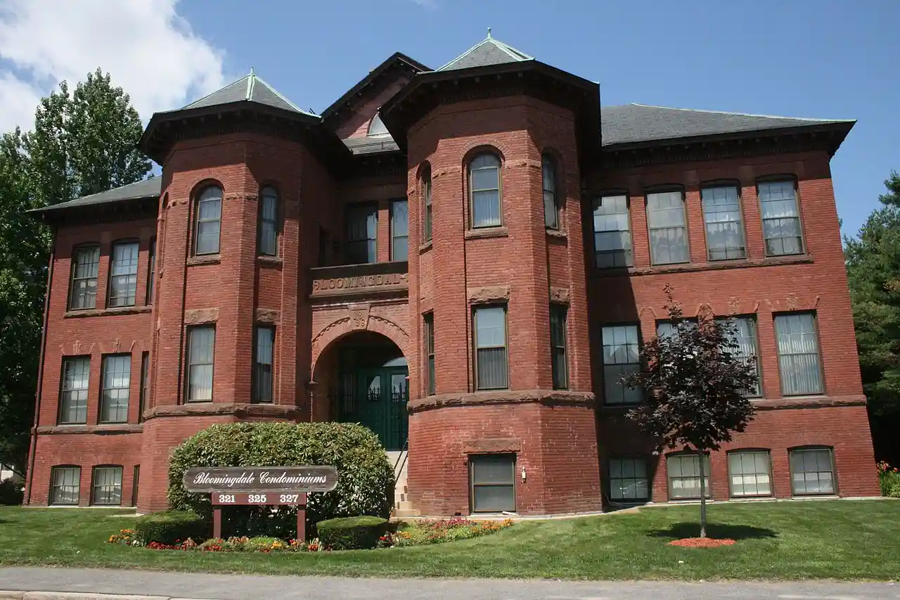 The Bloomingdale School is a historic former school building at 327 Plantation Street in Worcester, Massachusetts. Built in 1896, it is a notable local example of Richardsonian Romanesque architecture. It was used as a school until 1982, after which it was converted into residences. The building was listed on the National Register of Historic Places in 1980. Read more on Wikipedia