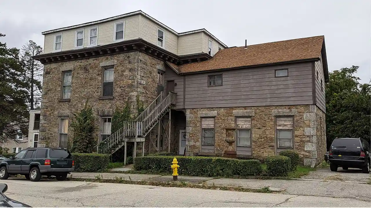 The Borden-Pond House is a historic house at 40 Laurel Street in Worcester, Massachusetts. Built about 1856 but probably not completed until 1861, it is a prominent early example of Second Empire architecture, and one of a small number of stone villas to survive (out of a larger number built) in the neighborhood. Lucius Pond, its second owner, was an important local machinist. The house was listed on the National Register of Historic Places in 1980. Read more on Wikipedia