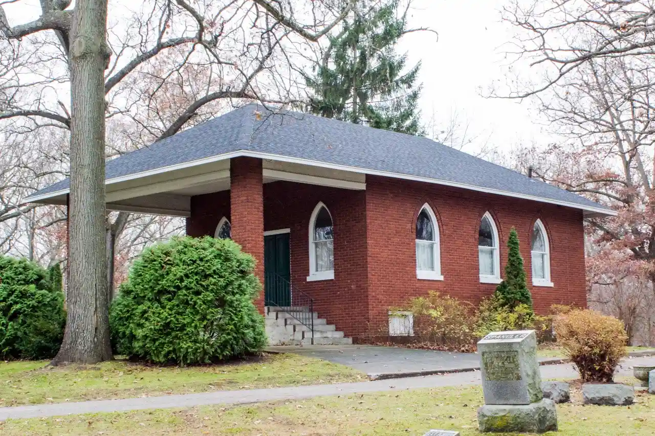 Oakwood Cemetery Chapel is a historic chapel on Arbor Street in Allegan, Michigan. It was built in 1920 and added to the National Register in 1987. Read more on Wikipedia