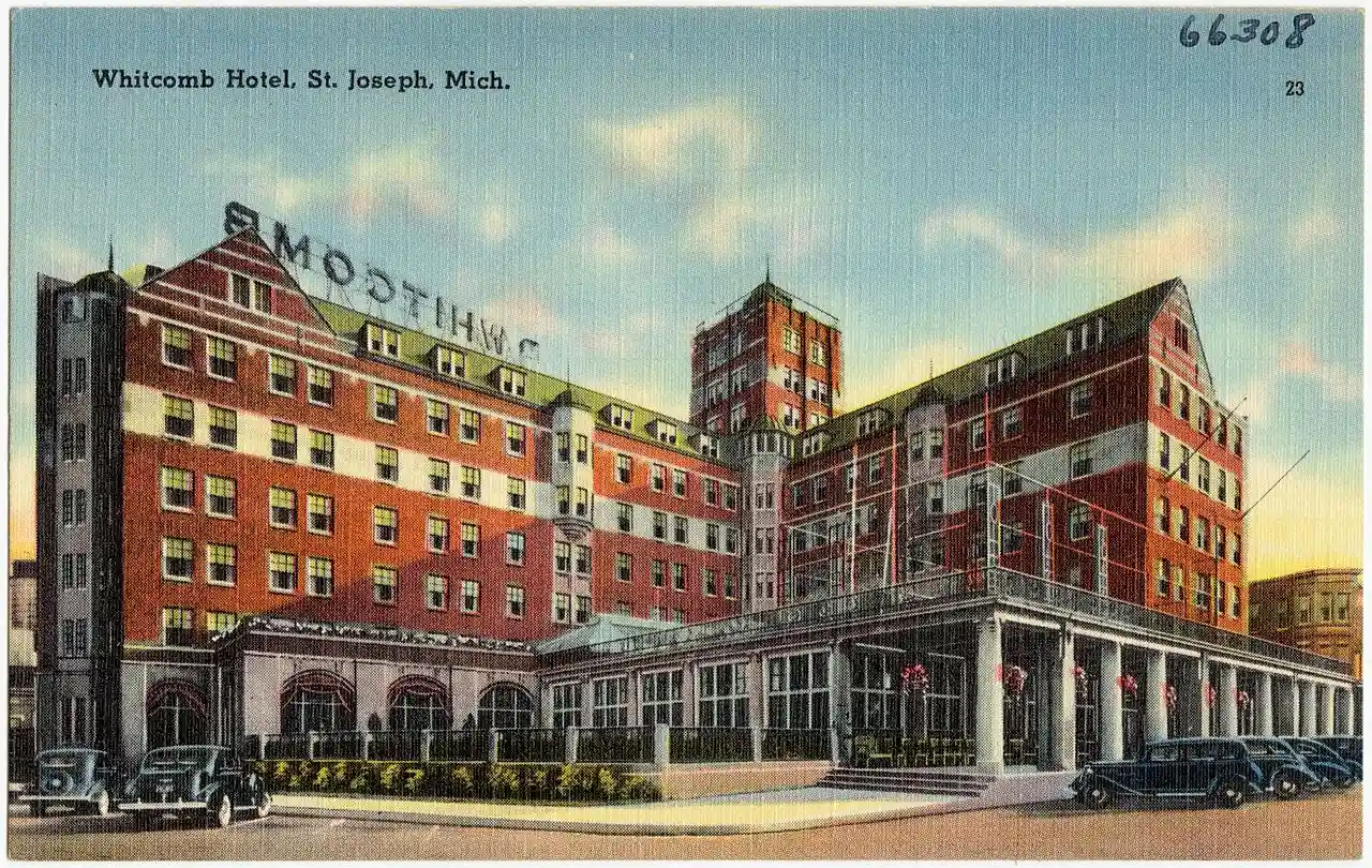 The Whitcomb Hotel, located in St. Joseph, Michigan, was a renowned hotel in the nineteenth and twentieth centuries known for its mineral spa and panoramic views of Lake Michigan and the St. Joseph River. It is now a four-star senior living community. The building was listed on the National Register of Historic Places in 2021. Read more on Wikipedia