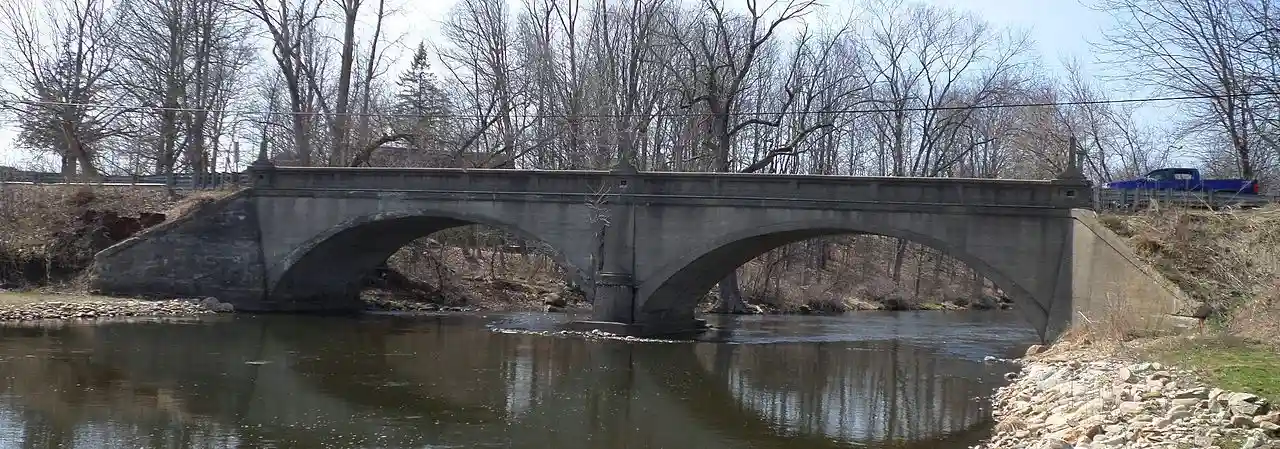 The 12 Mile Road–Kalamazoo River Bridge, also known as State Reward Bridge No. 53, is a filled-spandrel concrete arch bridge in Ceresco, Michigan, that carries 12 Mile Road over the Kalamazoo River. Built in 1920, it is listed on the National Register of Historic Places. Read more on Wikipedia