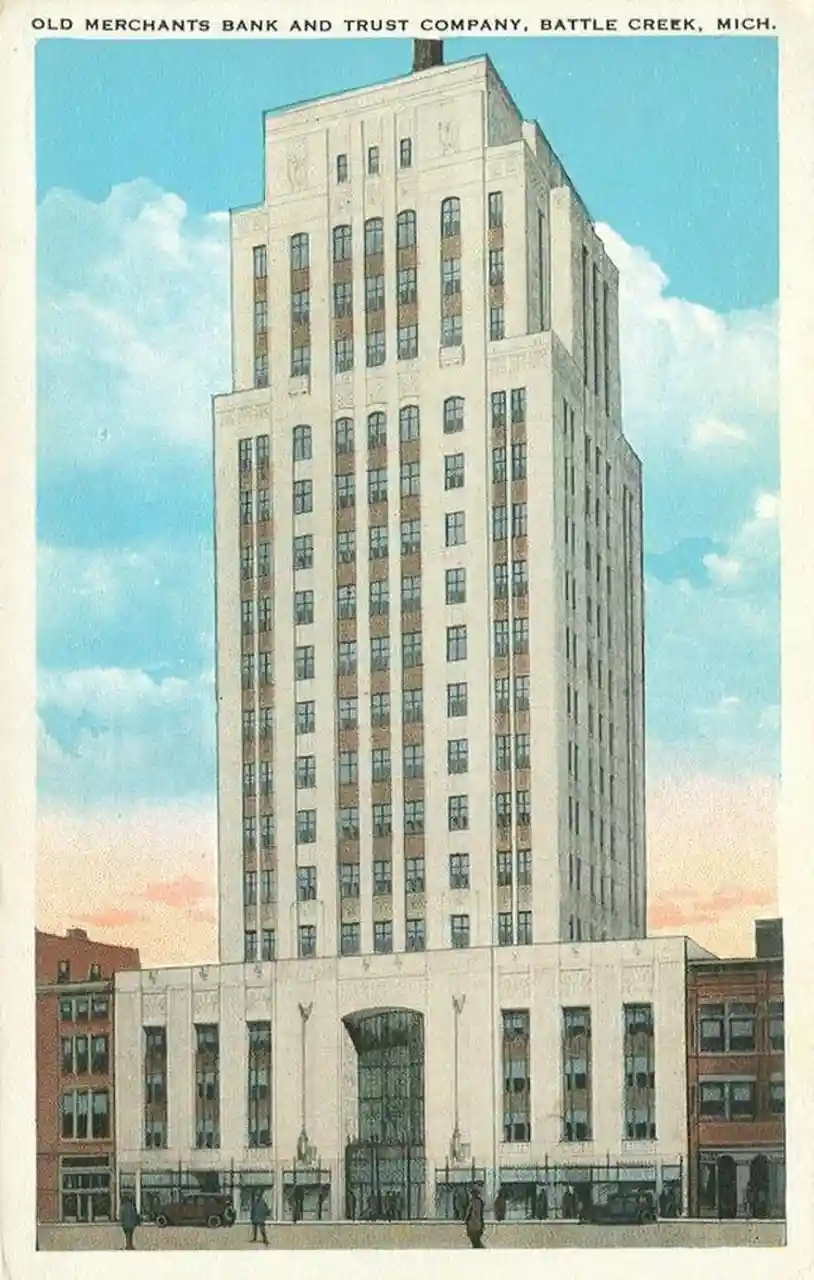 The Heritage Tower is a mixed-use commercial and residential building located at 25 West Michigan Avenue in Battle Creek, Michigan. It was originally built as the Old-Merchants National Bank and Trust Co. Building, and designed as an office building. It was listed on the National Register of Historic Places in 2018. Read more on Wikipedia