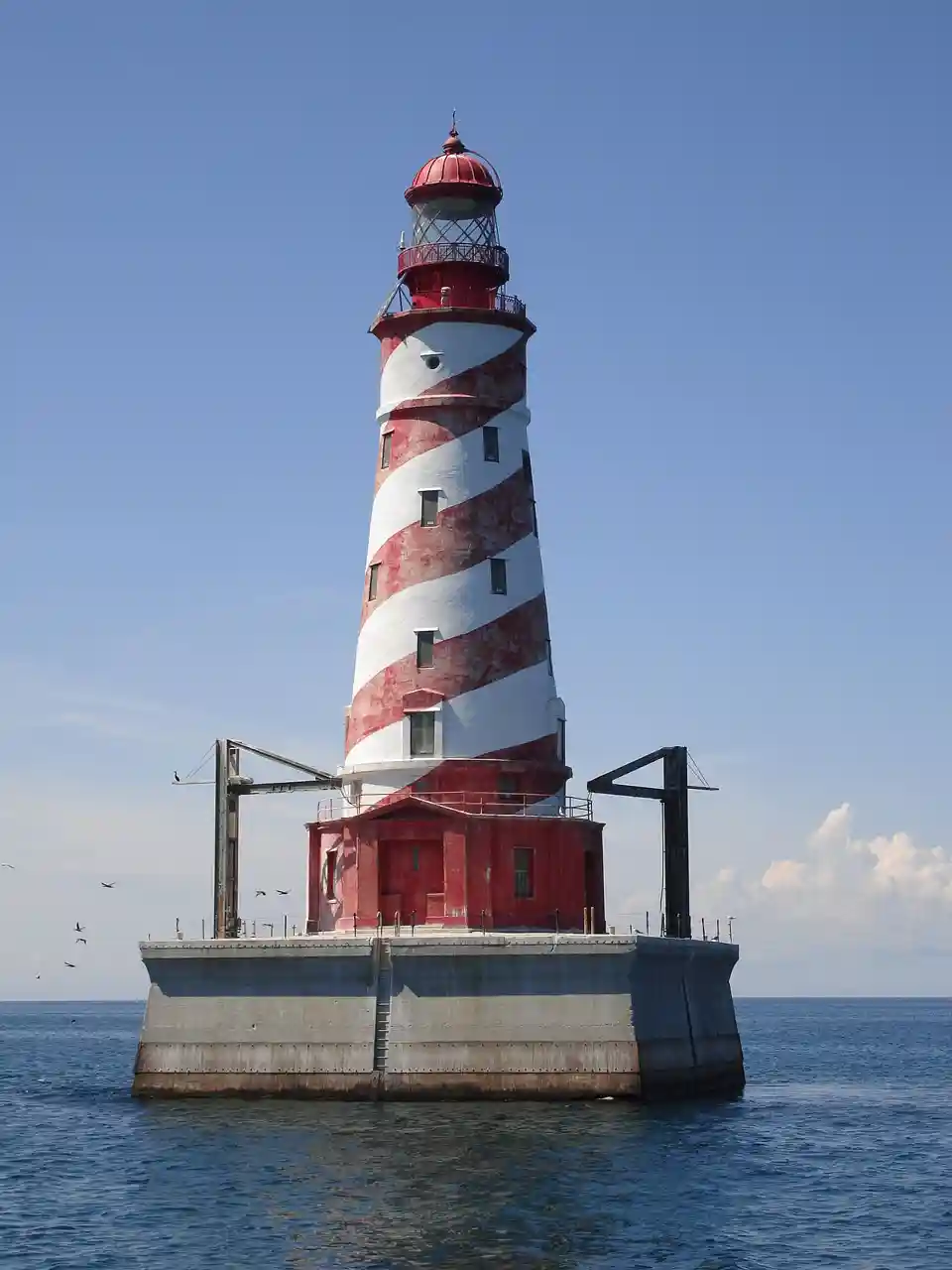 The White Shoal Light is a lighthouse located west of the Mackinac Bridge in Lake Michigan. It is an active aid to navigation. It is also the tallest lighthouse on the Great Lakes. Read more on Wikipedia