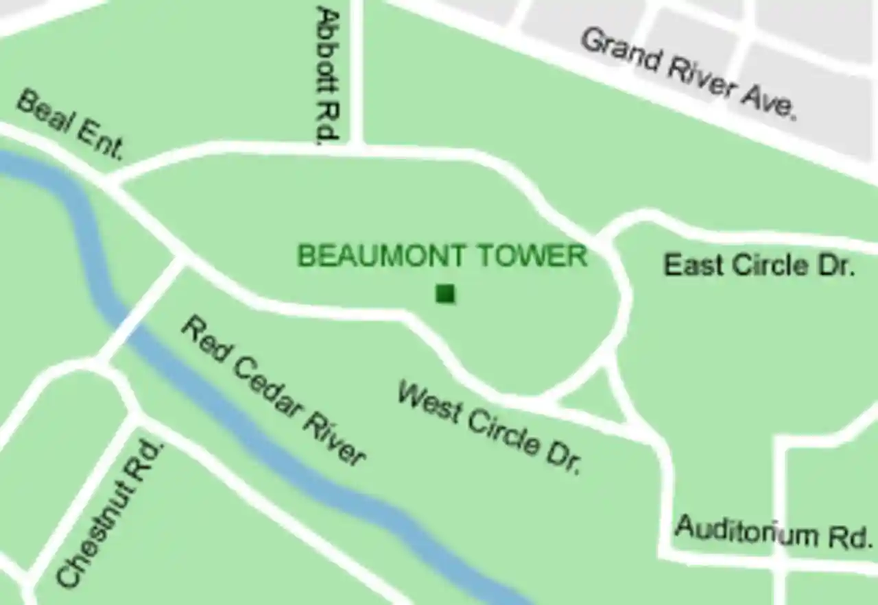 The Beaumont Tower is a structure on the campus of Michigan State University, designed by the architectural firm of Donaldson and Meier and completed in 1928. The tower marks the site of College Hall, the first building constructed on the campus, as well as the first building in America erected for instruction in scientific agriculture. Due to poor construction, College Hall collapsed in 1918. John W. Beaumont, an 1882 alumnus of MSU, proposed the construction of the monument to conserve the Campus Circle and serve as a monument to teaching. Read more on Wikipedia