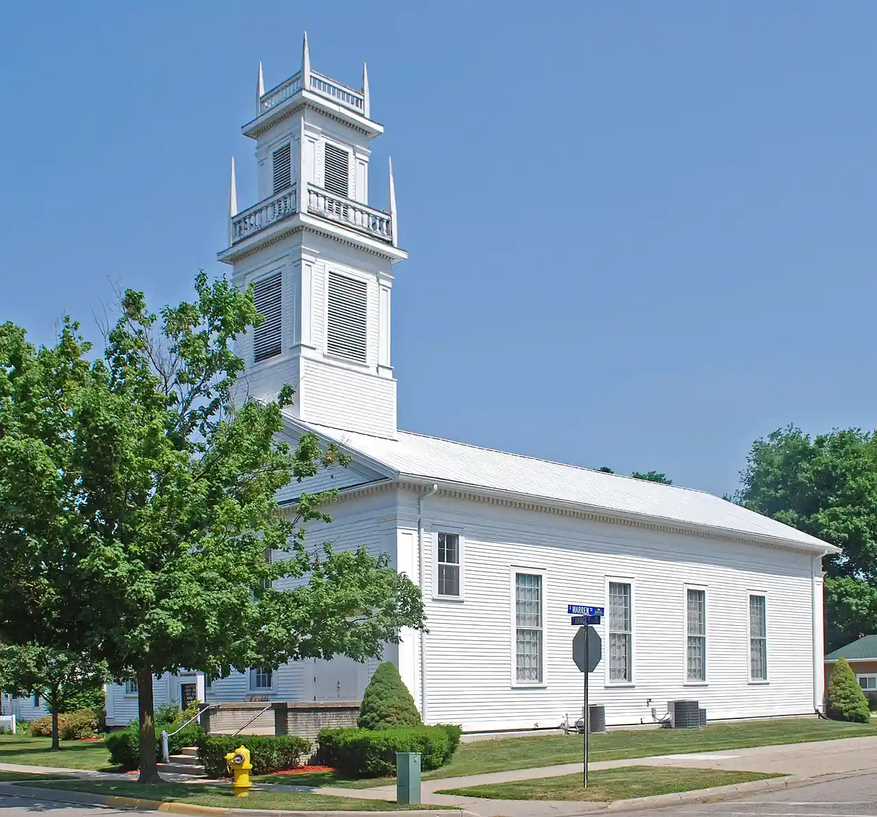 The Portland First Congregational Church is a historic church located at 421 E. Bridge Street in Portland, Michigan. The original Greek Revival style church was built in 1853 and added to the National Register of Historic Places in 1984. In 2015, the church was demolished by a tornado; it was rebuilt in 2016 in a style true to the original. Read more on Wikipedia