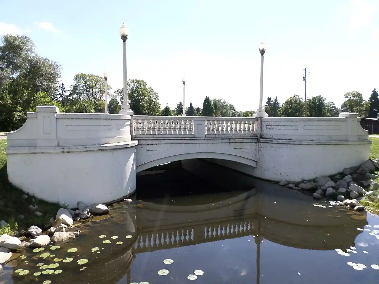 The Denton Road-Sparks Foundation Park Pond Bridge is a road bridge carrying Denton Road over the Sparks Foundation Park pond in Jackson, Michigan. The original bridge, constructed , was listed on the National Register of Historic Places in 2000. This bridge was demolished and replaced in 2007. Read more on Wikipedia