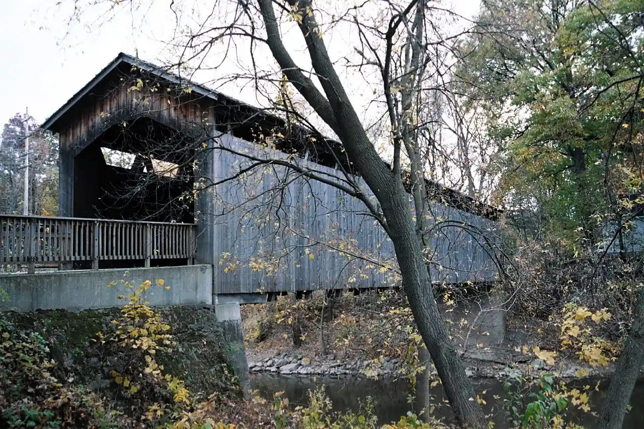 The Ada Covered Bridge is a span Brown truss covered bridge erected in 1867 in Ada, Michigan, United States. Carrying Bronson Street across the Thornapple River, it is located just south of where the Thornapple enters the Grand River, in turn just south of M-21. It is listed on the National Register of Historic Places. Read more on Wikipedia