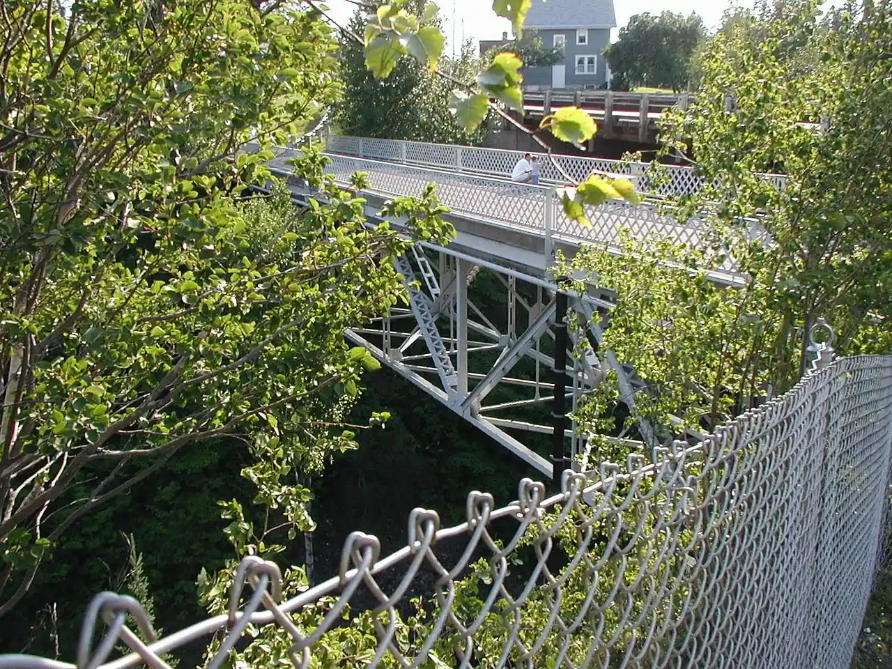 The Lake Shore Drive Bridge, also known as the M-26 Bridge or the Eagle River Bridge, is a pedestrian bridge in Eagle River, Michigan, crossing the Eagle River. It carried highway M-26 over the river from 1915 until 1990, when the adjacent Eagle River Timber Bridge replaced it for automobile traffic. The Lake Shore Drive Bridge is listed as a Michigan State Historic Site and is a contributing property of the Eagle River Historic District. Read more on Wikipedia