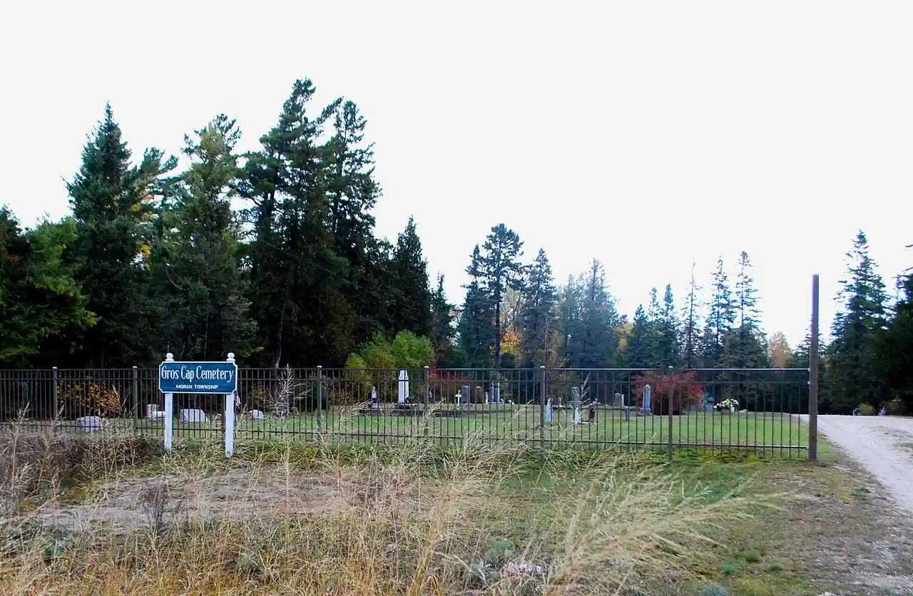 The Gros Cap Cemetery, once known as the Western Cemetery, is a cemetery located southeast of Gros Cap, Michigan on US 2. It is one of the oldest cemeteries in the United States to be continuously used, and a portion is contained in the Gros Cap Archaeological District. It was designated a Michigan State Historic Site in 1970 and listed on the National Register of Historic Places in 1971. Read more on Wikipedia