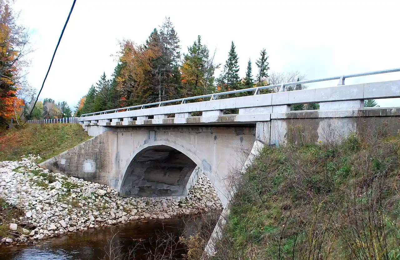 The Mackinac Trail–Carp River Bridge is a bridge located on H-63 (Mackinac Trail) over the Carp River in St. Ignace Township, Michigan. It is the oldest bridge in Mackinac County, and was listed on the National Register of Historic Places in 1999. Read more on Wikipedia