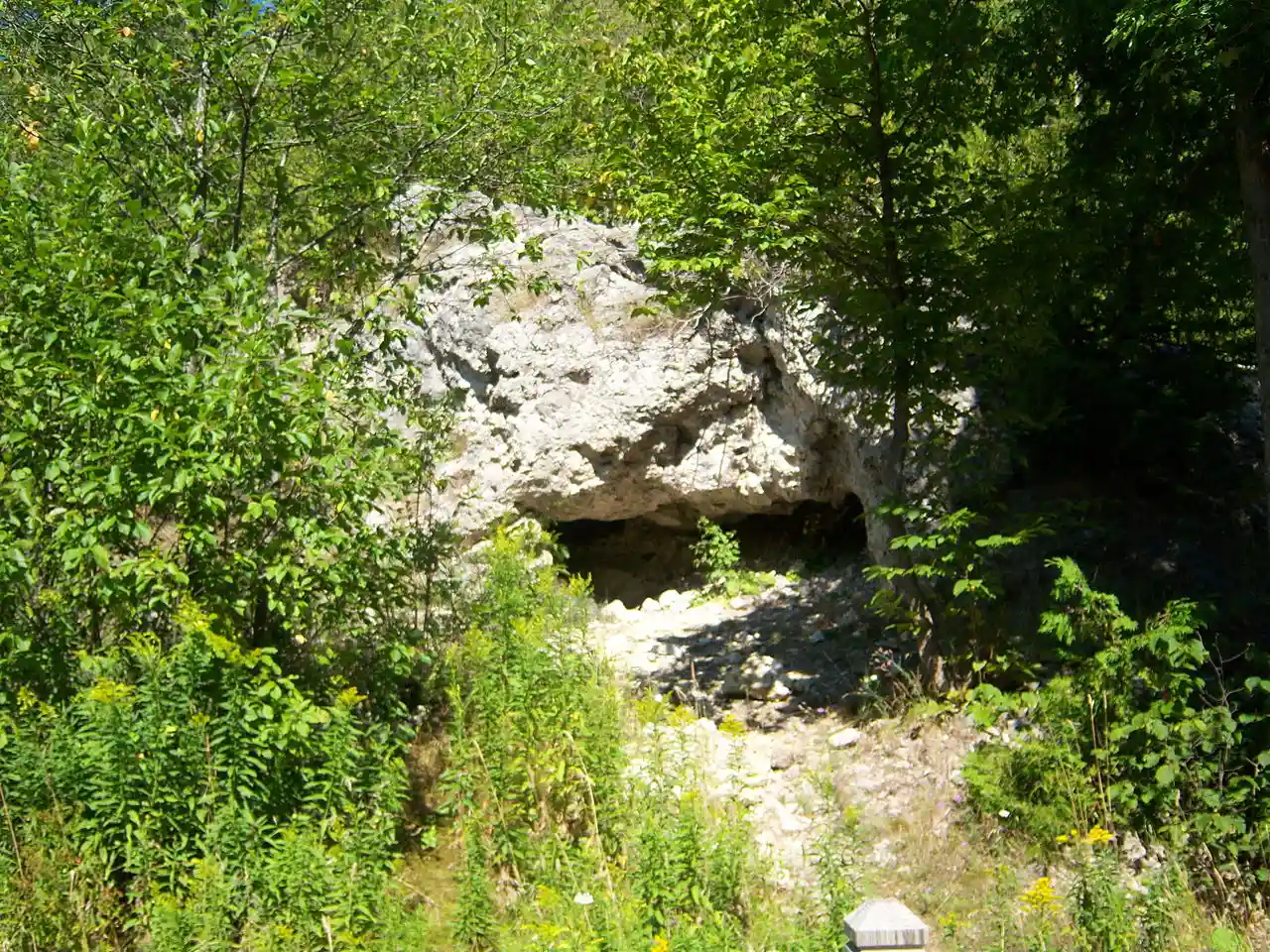 Skull Cave is a small and shallow cave on the central heights of Mackinac Island in Michigan, United States. The cave was carved during the Algonquin post-glacial period by the waters of Lake Algonquin, a swollen meltwater ancestor of today's Lake Huron."Mackinac Island State Park Interpretation", accessed April 14, 2008.Mackinac State Historic Parks website Read more on Wikipedia