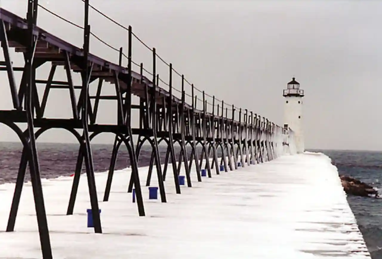 The Manistee Pierhead lights are a pair of active aids to navigation located on the north and south pier in the harbor of Manistee, Michigan, "Lake Michigan’s Victorian Port City."Terry Pepper, Seeing the Light, Manistee Pierhead Lighthouse. Read more on Wikipedia
