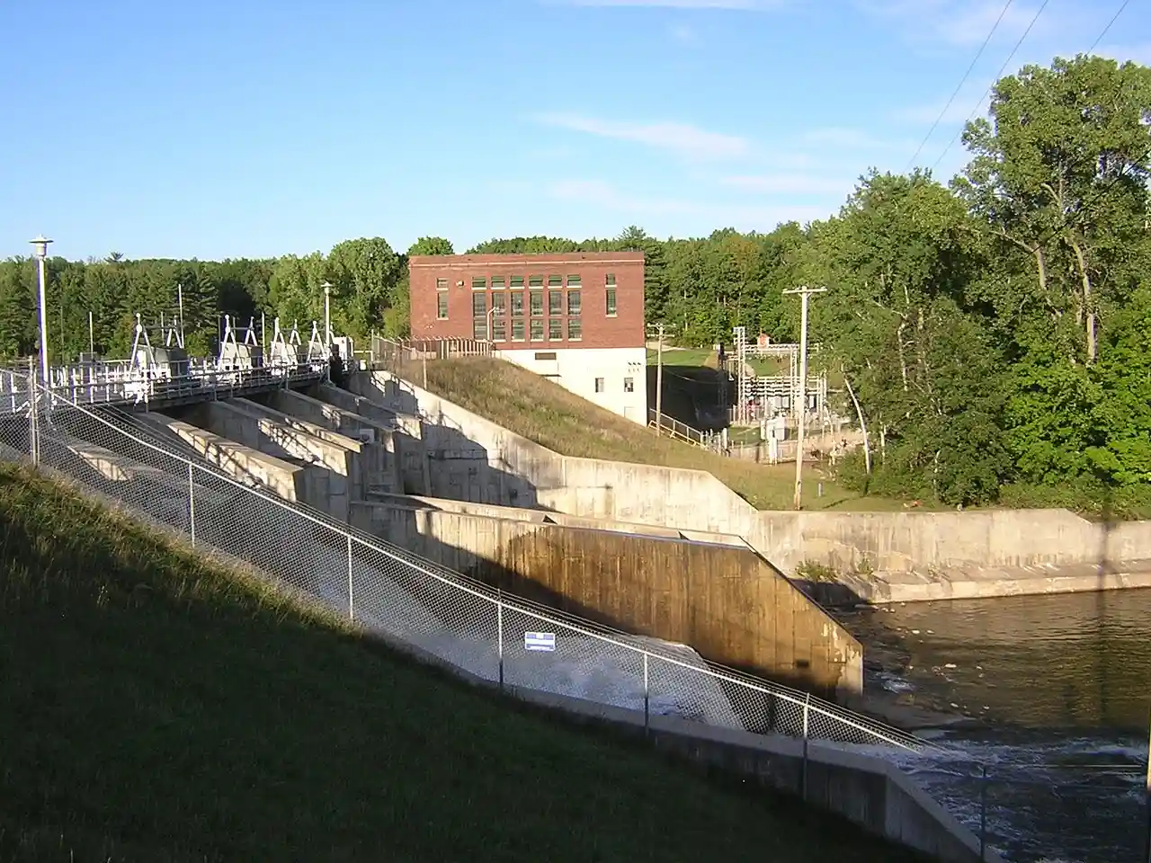 Rogers Dam is an earth-filled embankment dam on the Muskegon River in Mecosta Township, Michigan, United States. It is located about south of Big Rapids. Construction of the dam began in 1905, and its power plant was commissioned in March 1906. Owned and operated by Consumers Energy, the primary purpose of the dam is hydroelectric power generation. On December 22, 1921, the original power plant was destroyed in a fire. It was rebuilt with an increased installed capacity in 1922. The rebuild cost approximately $450,000. It is the oldest hydroelectric power plant operated by Consumers Energy who owns the Hardy and Croton dams downstream of Rogers Dam. Read more on Wikipedia