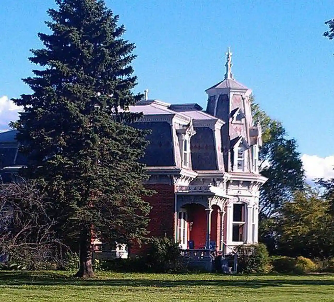 The Richard C. Burtis House or Wedding Cake House is a Historic Site in Tuscola County, Michigan. The two-story Second Empire building was built from 1879 to 1880 for Richard C. Burtis, a shoemaker and local landowner. Ornamentation includes brackets and a decorative frieze supporting a mansard roof with decorative slate shingle. A bay window topped by a steep octagonal tower dominates the front facade. Read more on Wikipedia