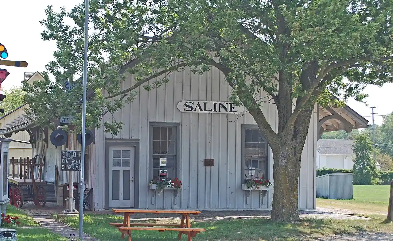 The Saline station, also known as the Detroit, Hillsdale and Indiana Railroad-Saline Depot, is a former railroad depot located at 402 North Ann Arbor Street in Saline, Michigan. It was listed on the National Register of Historic Places in 1994. The building now houses the Saline Depot Museum. Read more on Wikipedia