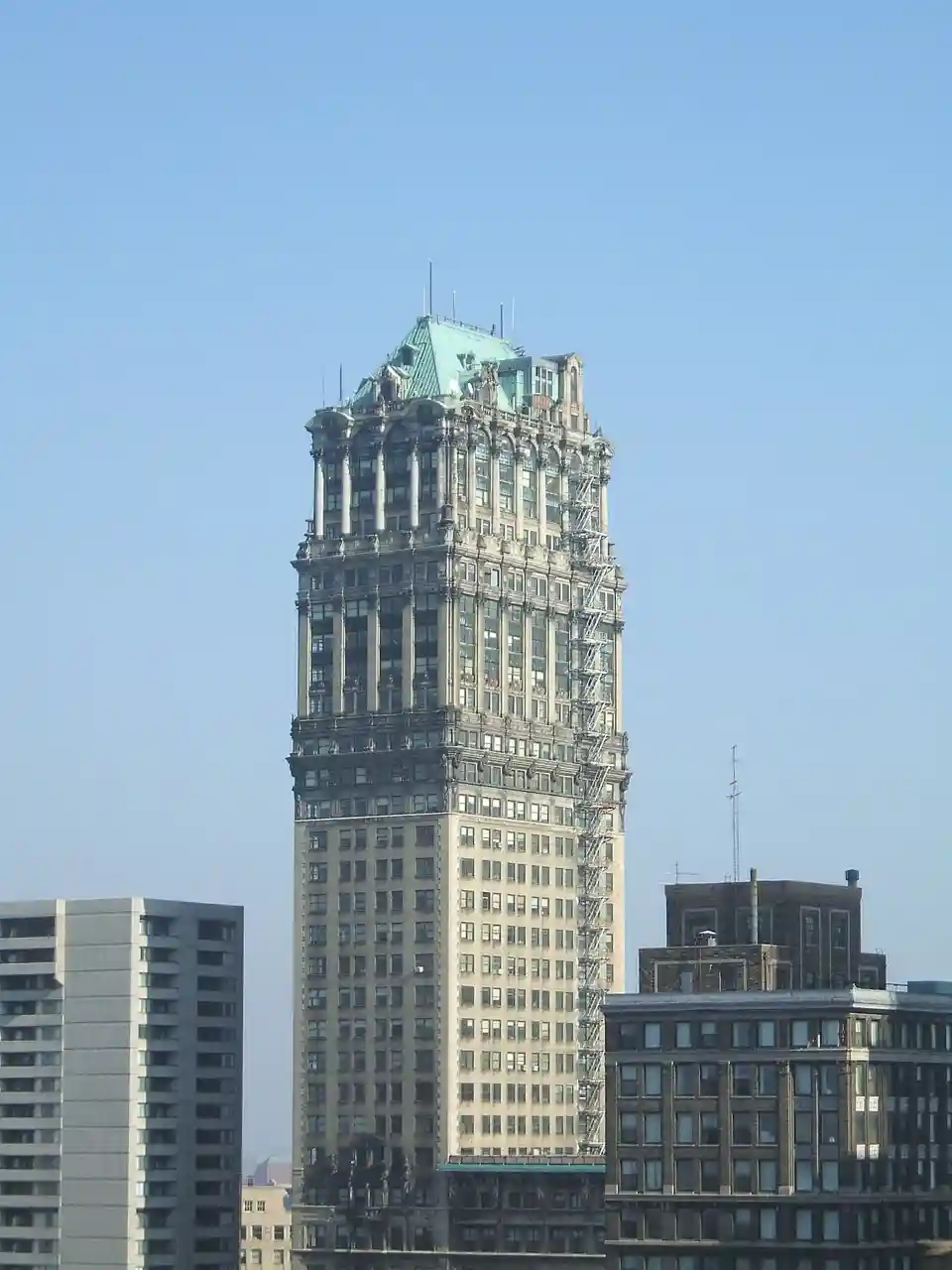 The Book Tower is a , 38-story skyscraper located at 1265 Washington Boulevard in Downtown Detroit, Michigan, within the Washington Boulevard Historic District. Construction began on the Italian Renaissance-style building in 1916, as an addition to the original Book Building, and finished a decade later, making it, at the time, the tallest building in Detroit. The building was designed by architect Louis Kamper, an American architect, active in and around Detroit and Wayne County, Michigan. Read more on Wikipedia