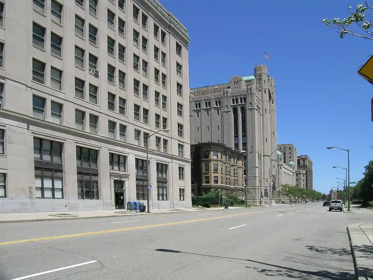 The Cass Park Historic District is a historic district in Midtown Detroit, Michigan, consisting of 25 buildings along the streets of Temple, Ledyard, and 2nd, surrounding Cass Park. It was listed on the National Register of Historic Places in 2005 and designated a city of Detroit historic district in 2016. Read more on Wikipedia