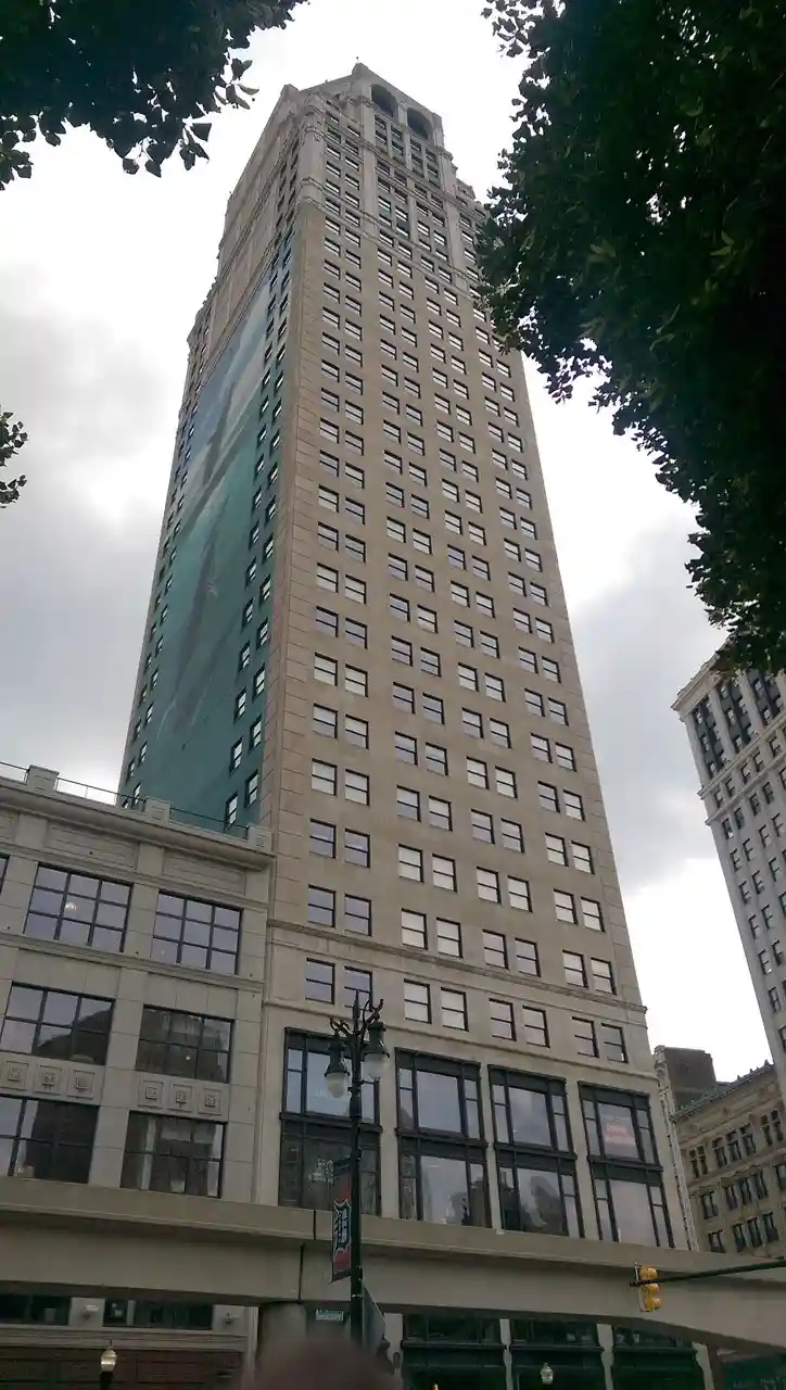 The Broderick Tower is a residential skyscraper in Downtown Detroit, Michigan. Original construction began in 1926, and was completed in 1928. The Broderick was fully renovated in 2012 by JC Beal Construction Inc., who also served as the developer. The tower was the second tallest building in Michigan when it was originally completed in 1928. It stands 34-stories, with two basement floors. The building is designed with Neo-classical architecture, Chicago school, and Beaux-Arts designs. Limestone is a prominent material in the building's surface. It was designed by architects Louis Kamper and Paul Kamper for Theodore Eaton. Read more on Wikipedia